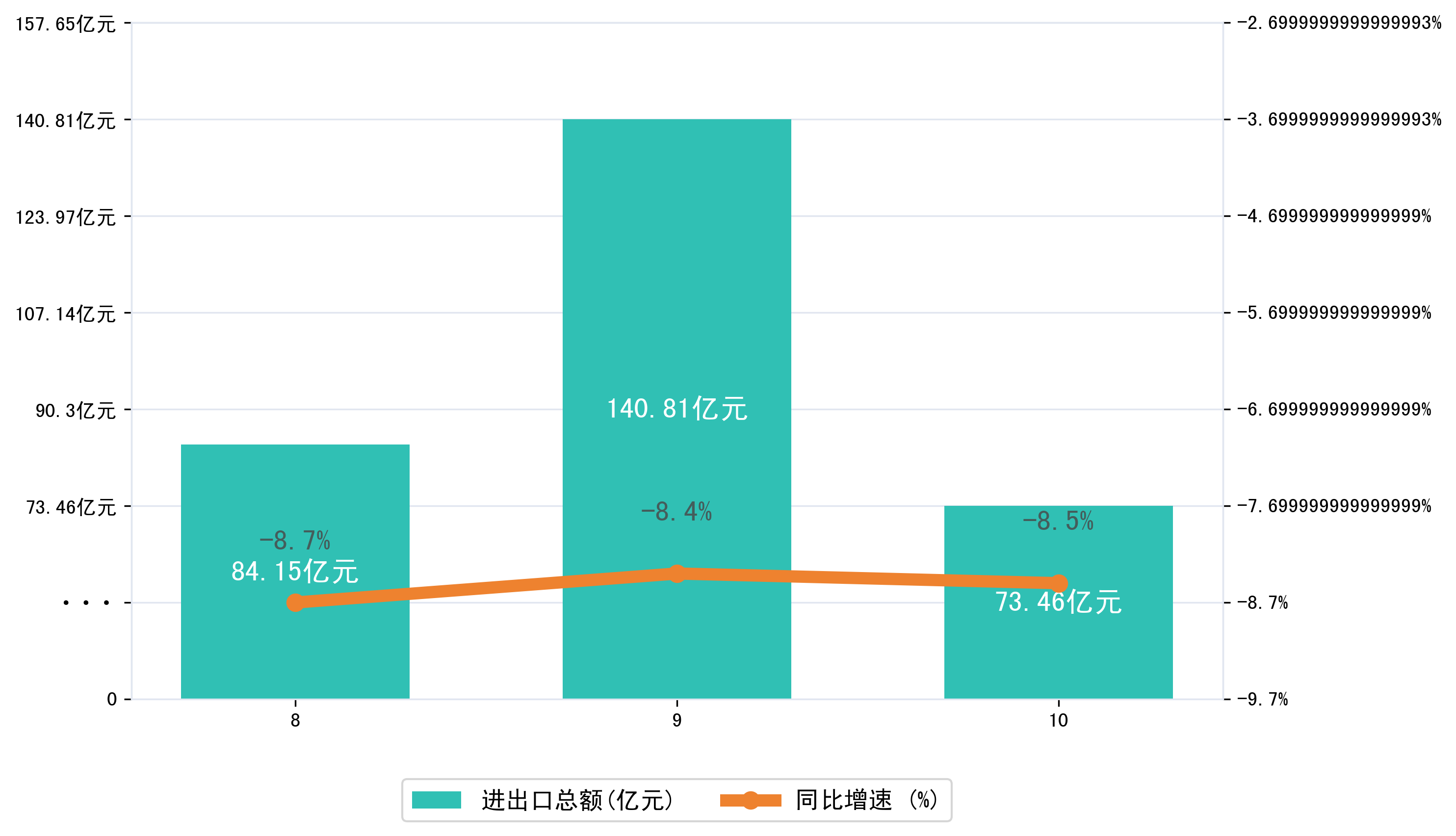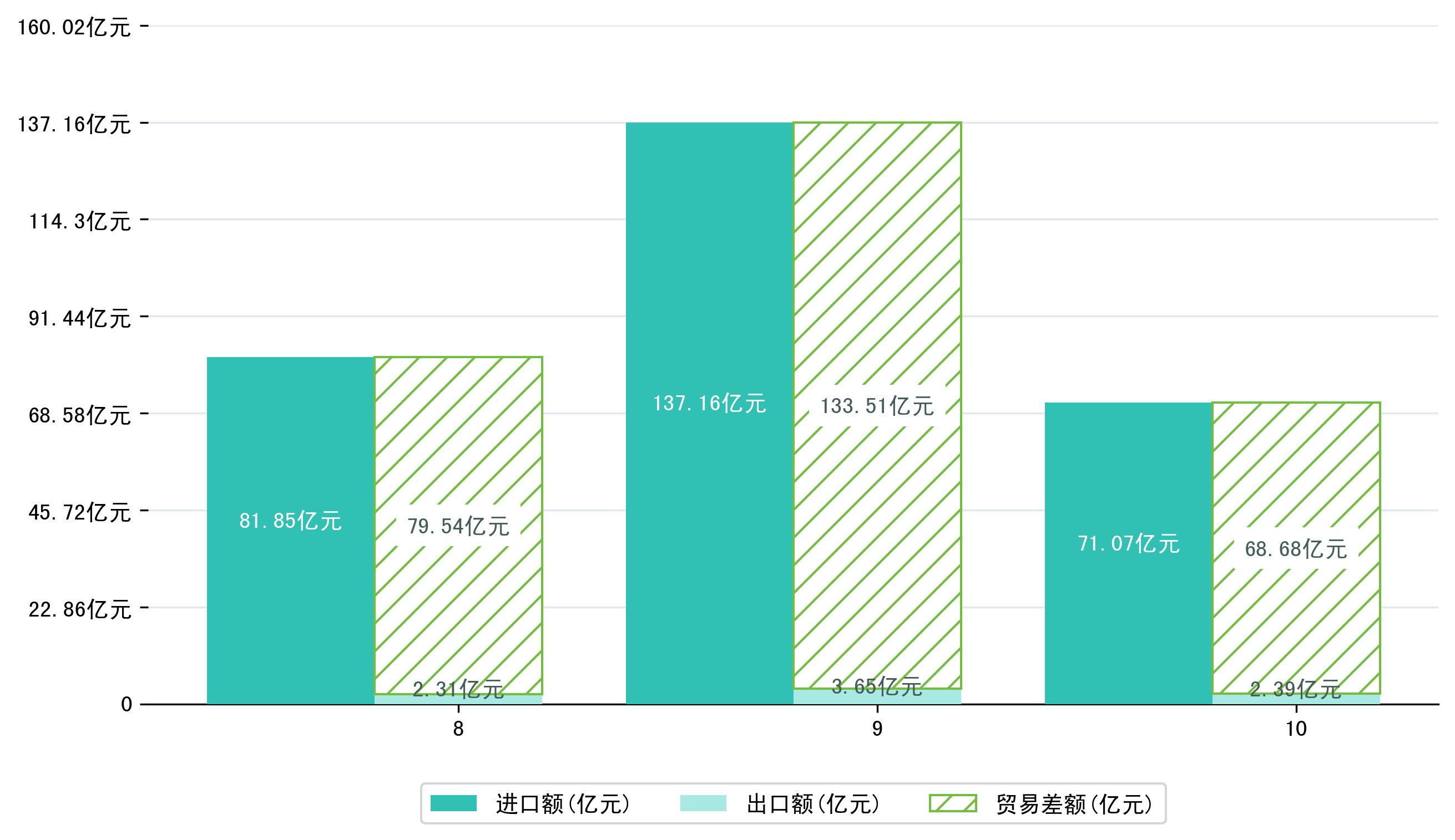 (图一:2025年8-10月大庆市进出口总额)