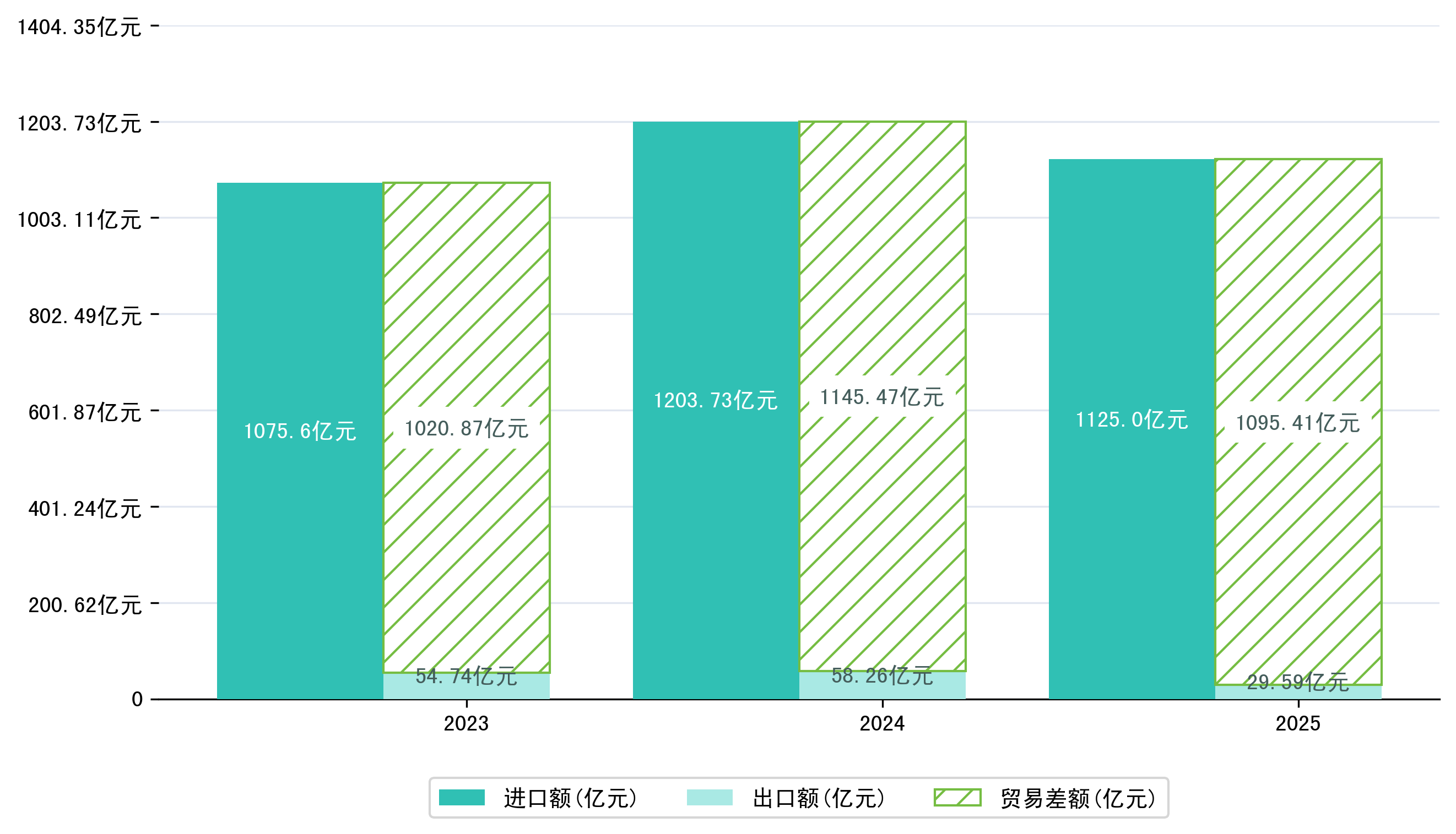 以人民币计,2025年10月大庆市贸易差额为68,6768,8652万元(贸易逆差),相比上月增加了64,8289,8330万元,即9,0321,8233万美元;相比上年同期增加了4,4885,1749万元,同比增加-6.13%。