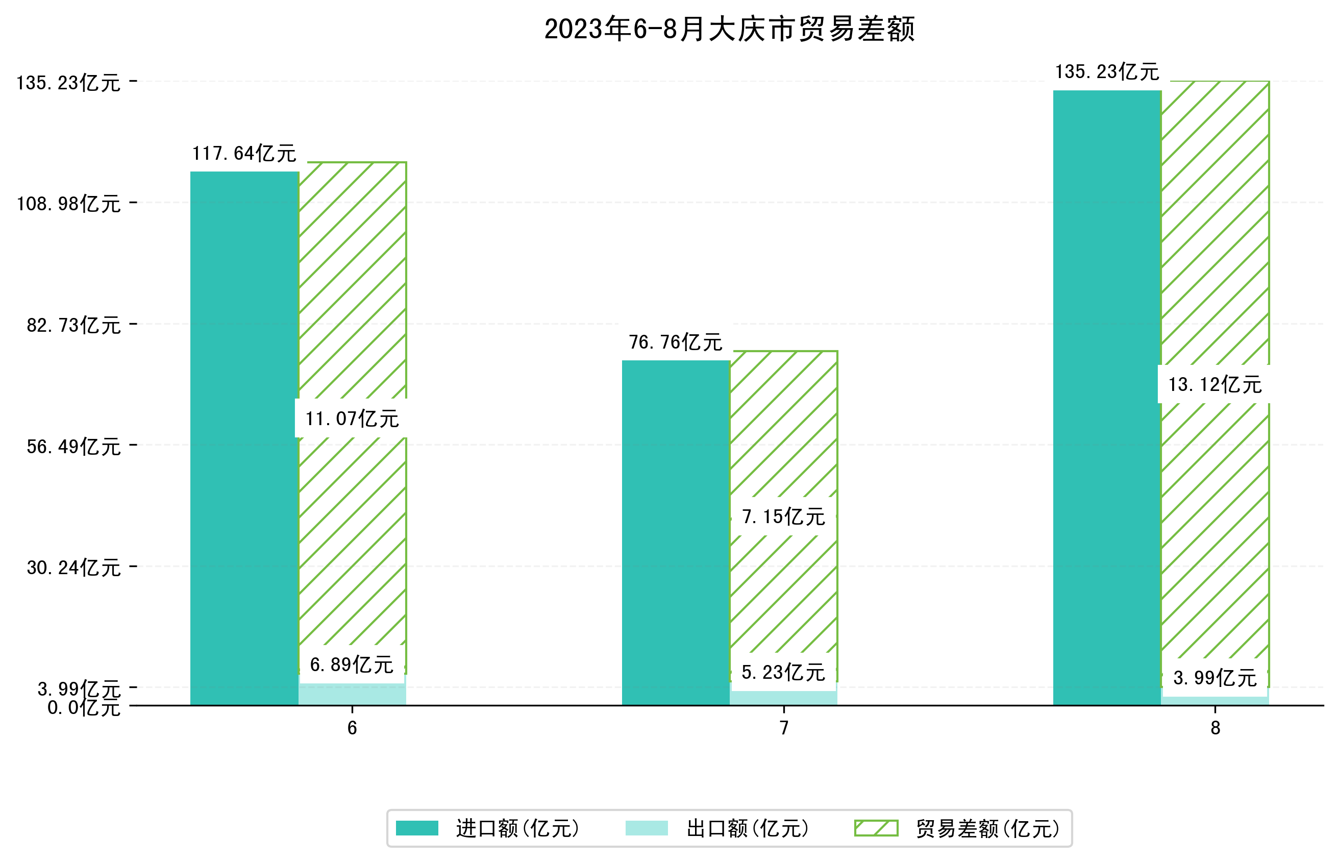 2023年8月大庆市进出口总额及进出口差额统计分析