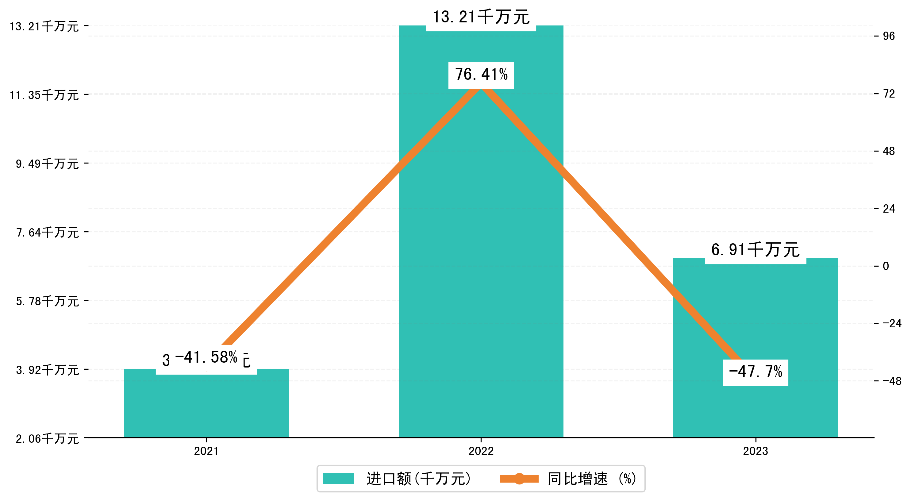 以人民币计,2023年1-2月大同市进口额为6910.1731万元,相比上年同期减少了6302.4444万元,同比减少了-47.70%。