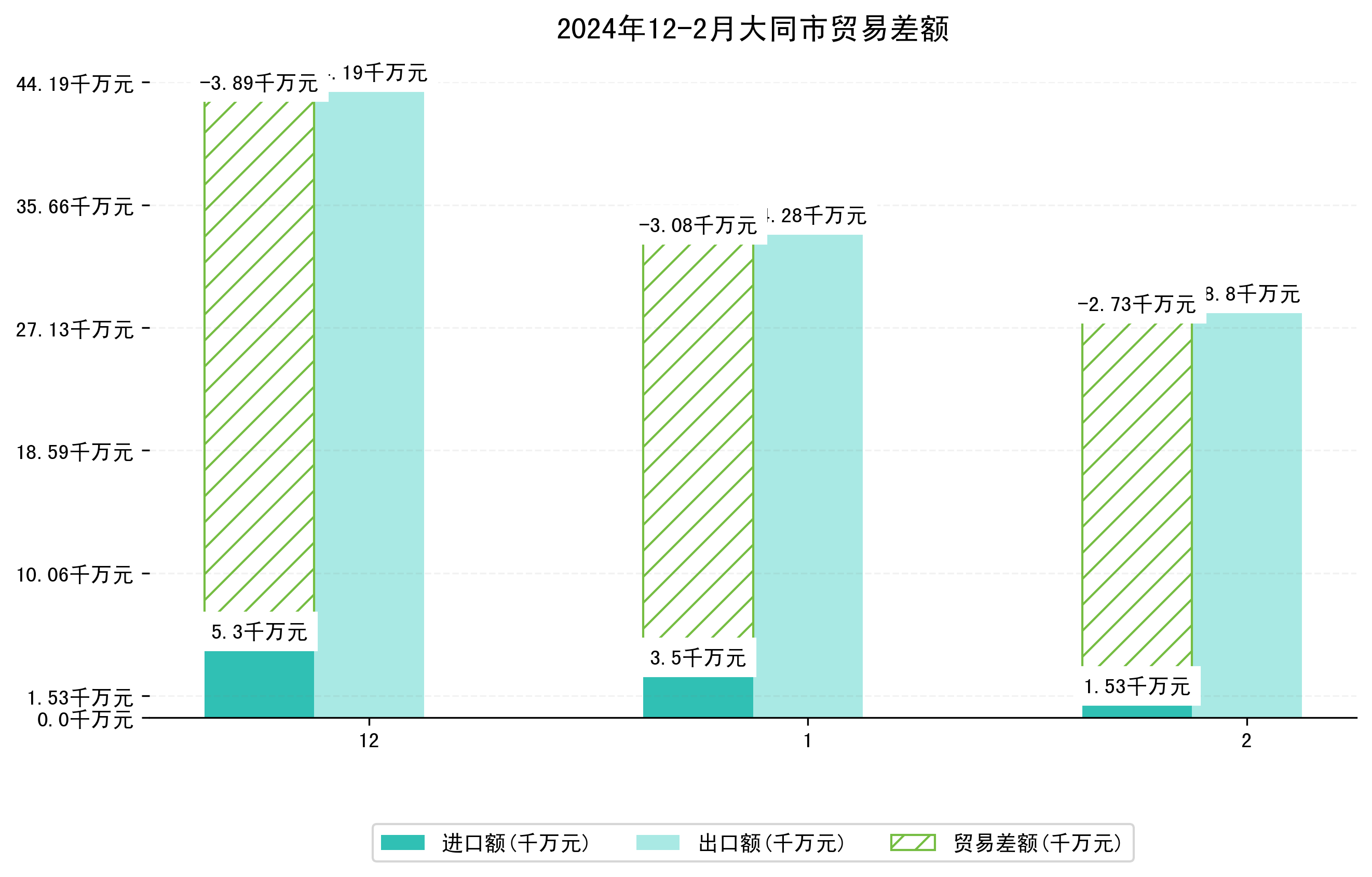 一、2024年2月大同市单月出口总额及进出口差额统计分析