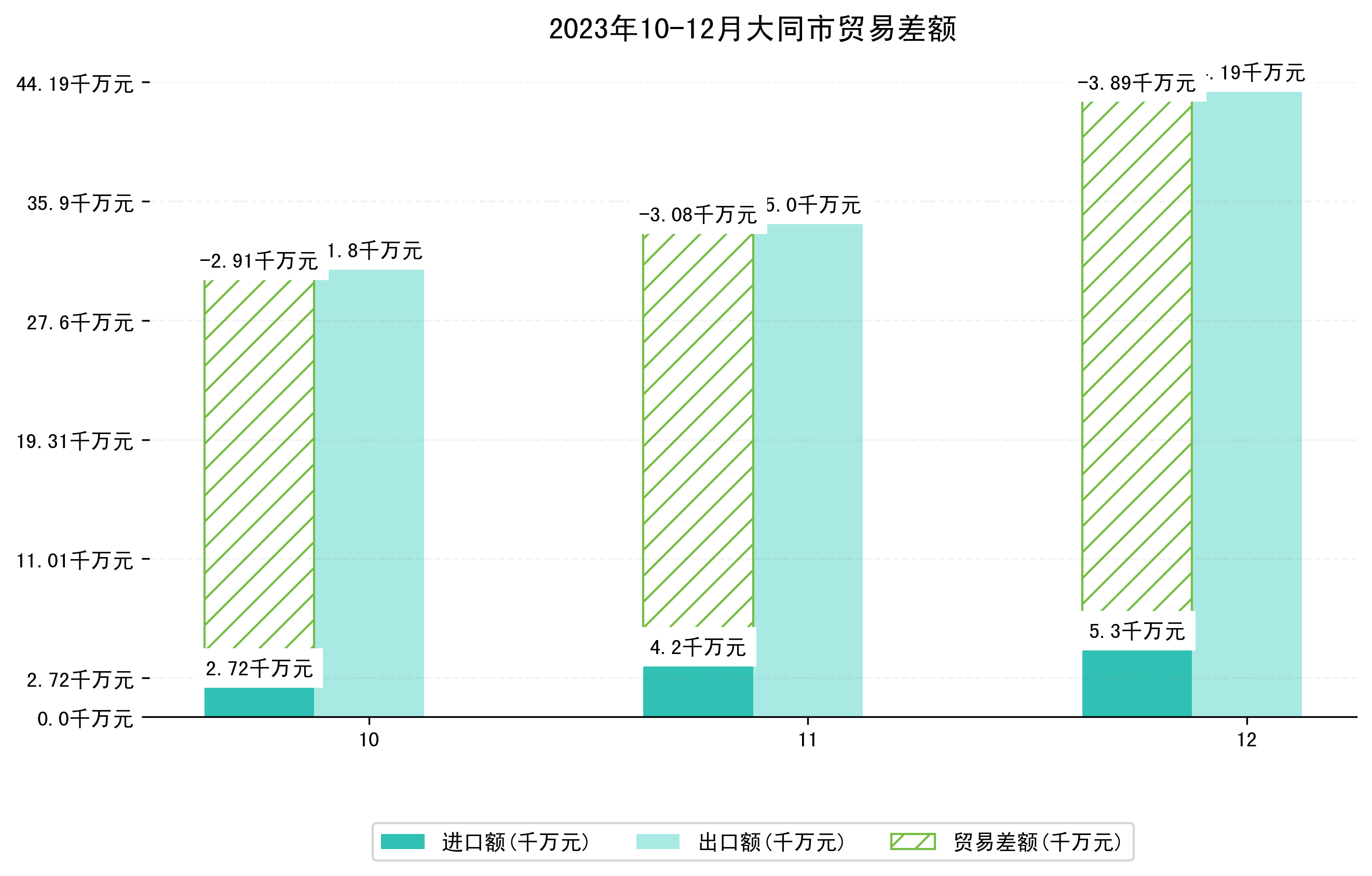 (图一:2023年10-12月大同市进出口总额)