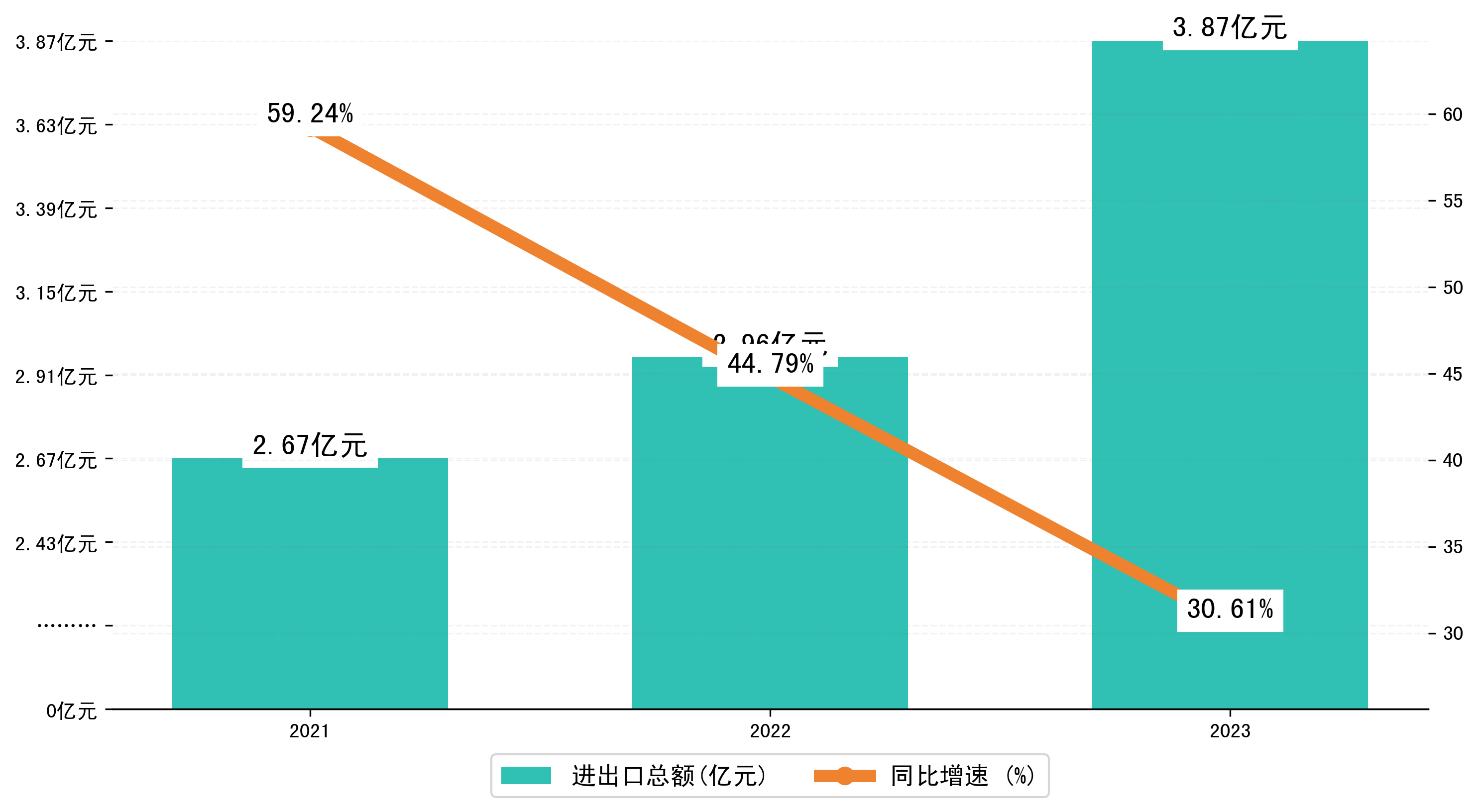以人民币计,2023年1-1月大同市进出口总额为3,8723.5201万元,相比上年同期增加了9075.4607万元,同比增加了30.60%。