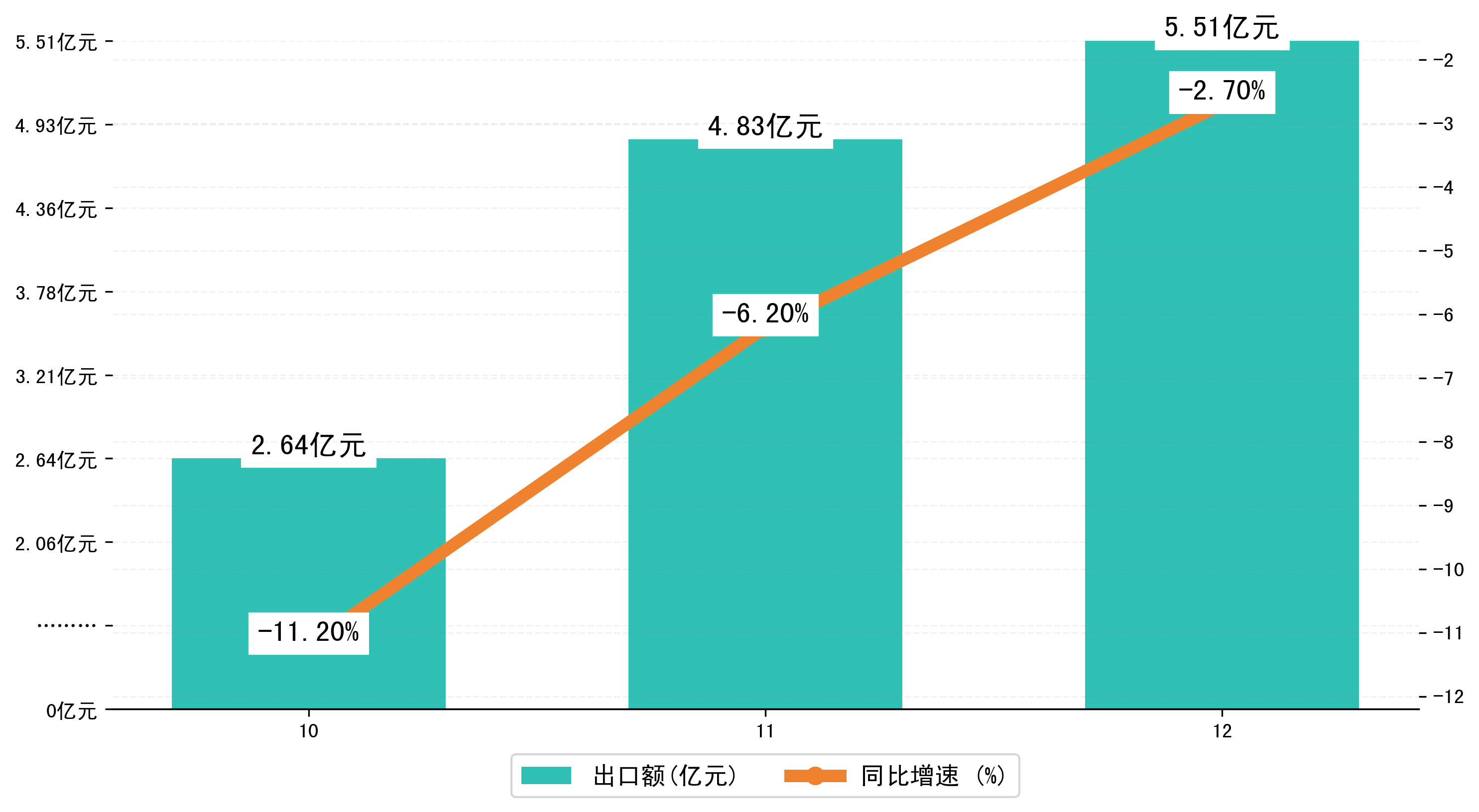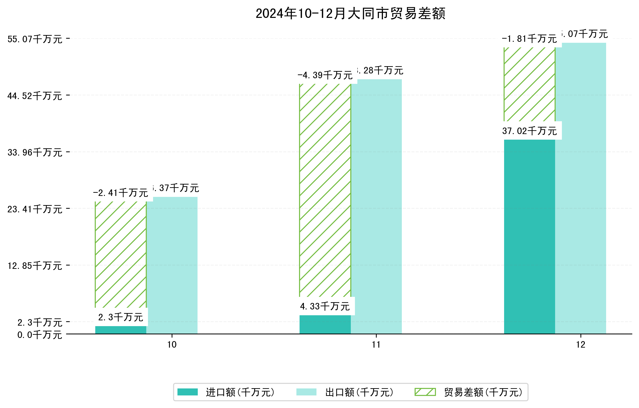 一、2024年12月大同市单月出口总额及进出口差额统计分析