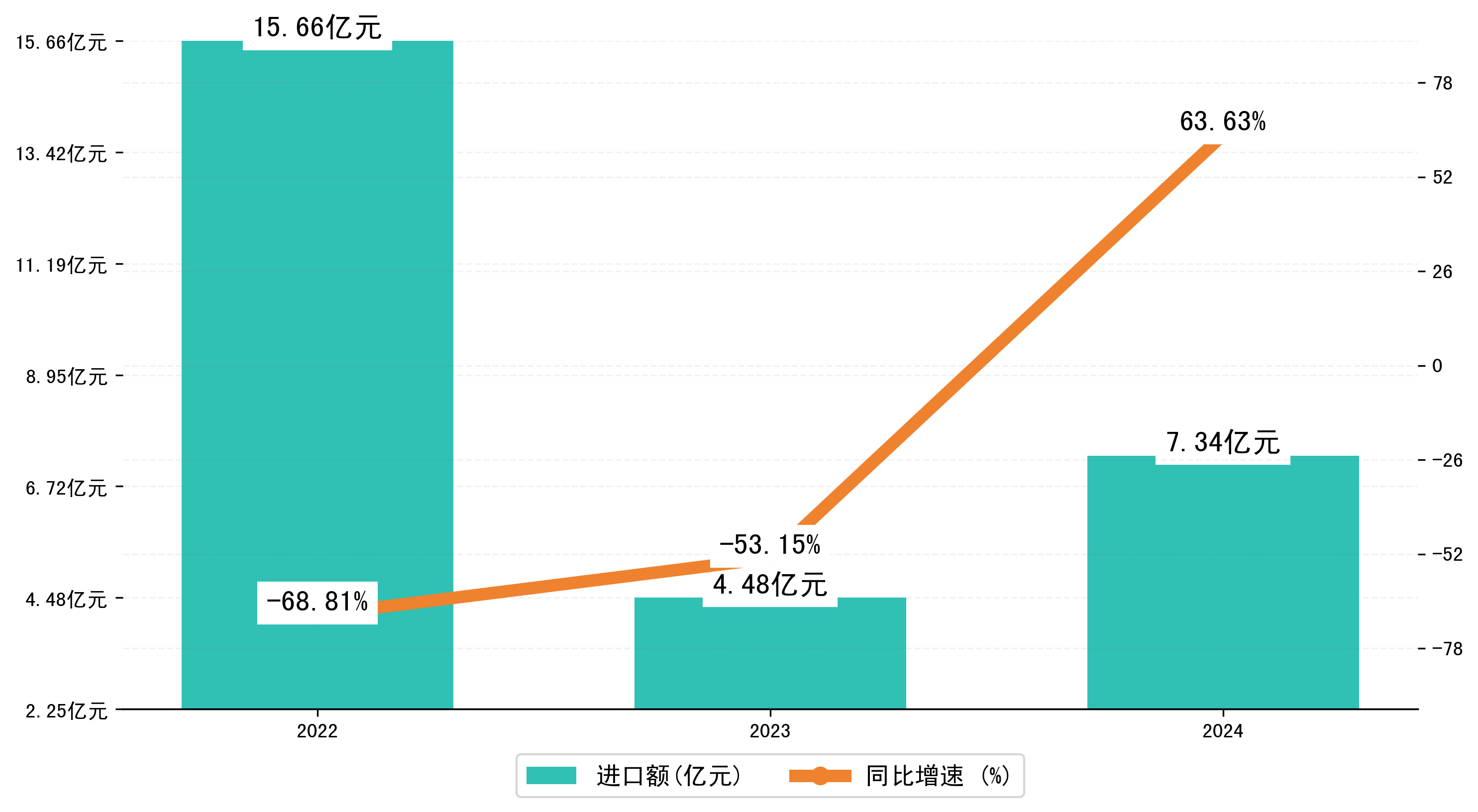 以人民币计,2024年1-12月大同市进口额为7,3363.9394万元,相比上年同期增加了2,8528.4642万元,同比增加了63.60%。