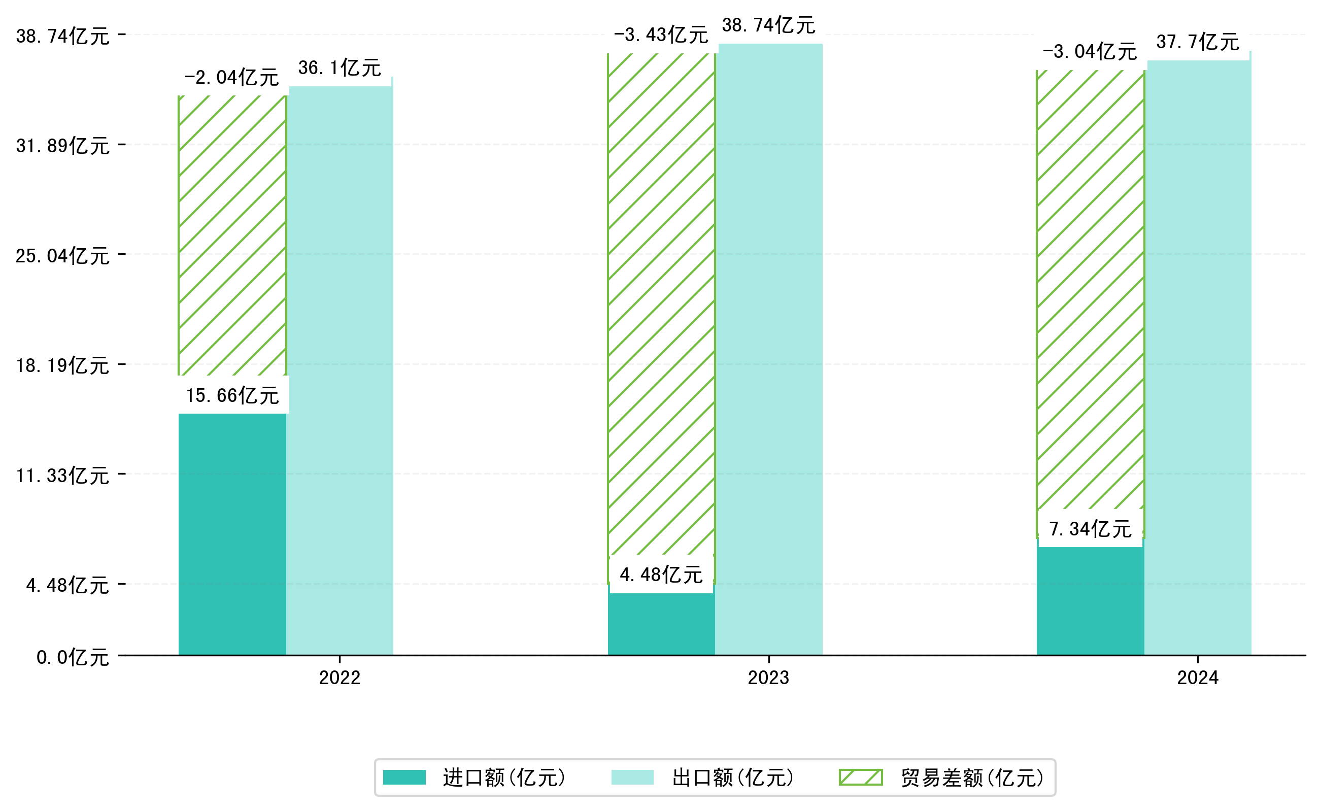 以美元计,2024年1-12月大同市进出口总额为6,3194.421万美元,相比上年同期增加了1686.5452万美元,同比增加2.70%。