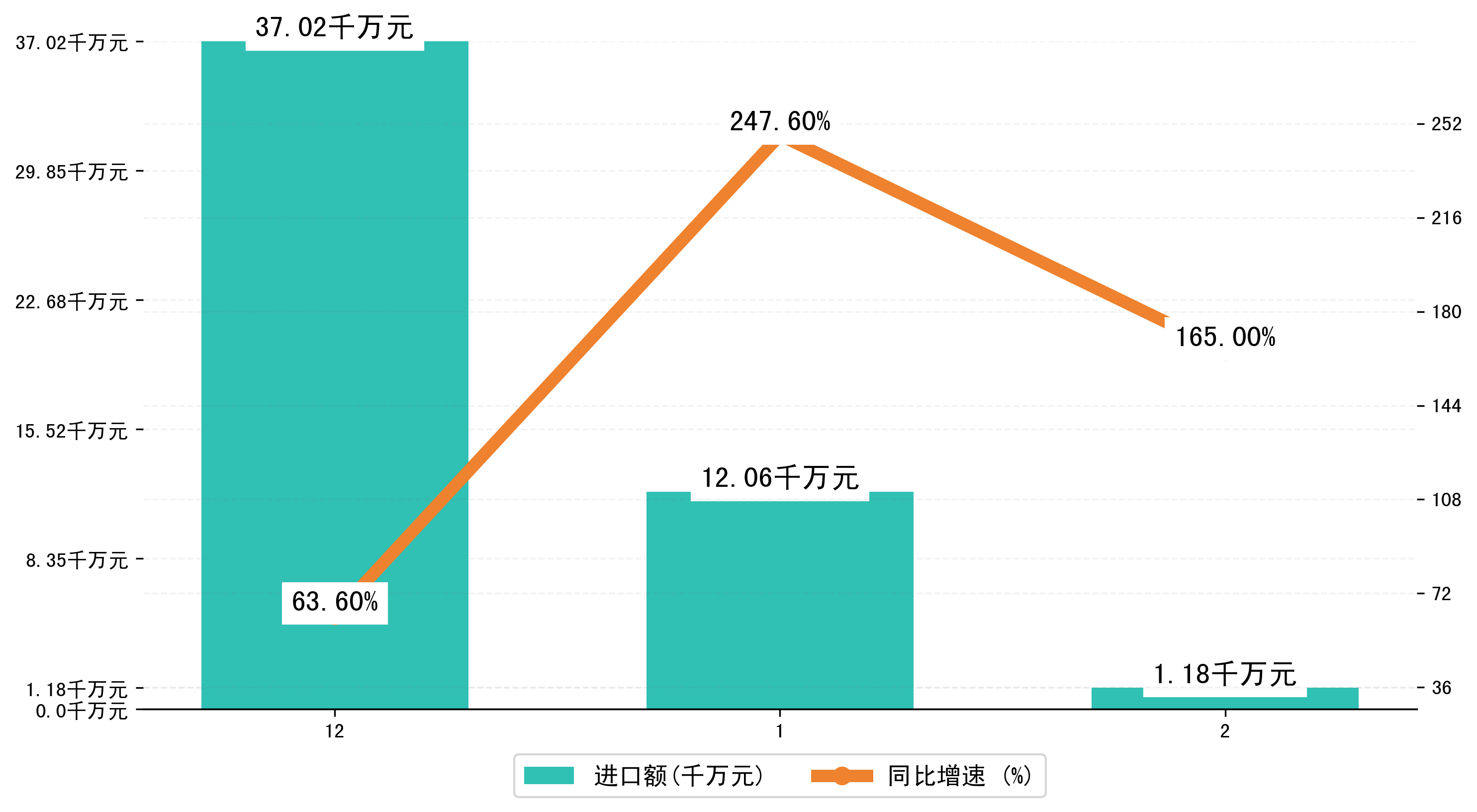 以美元计,2025年1-2月大同市进口额为1842.3687万美元,相比上年同期增加了1131.5774万美元,同比增加160.70%。