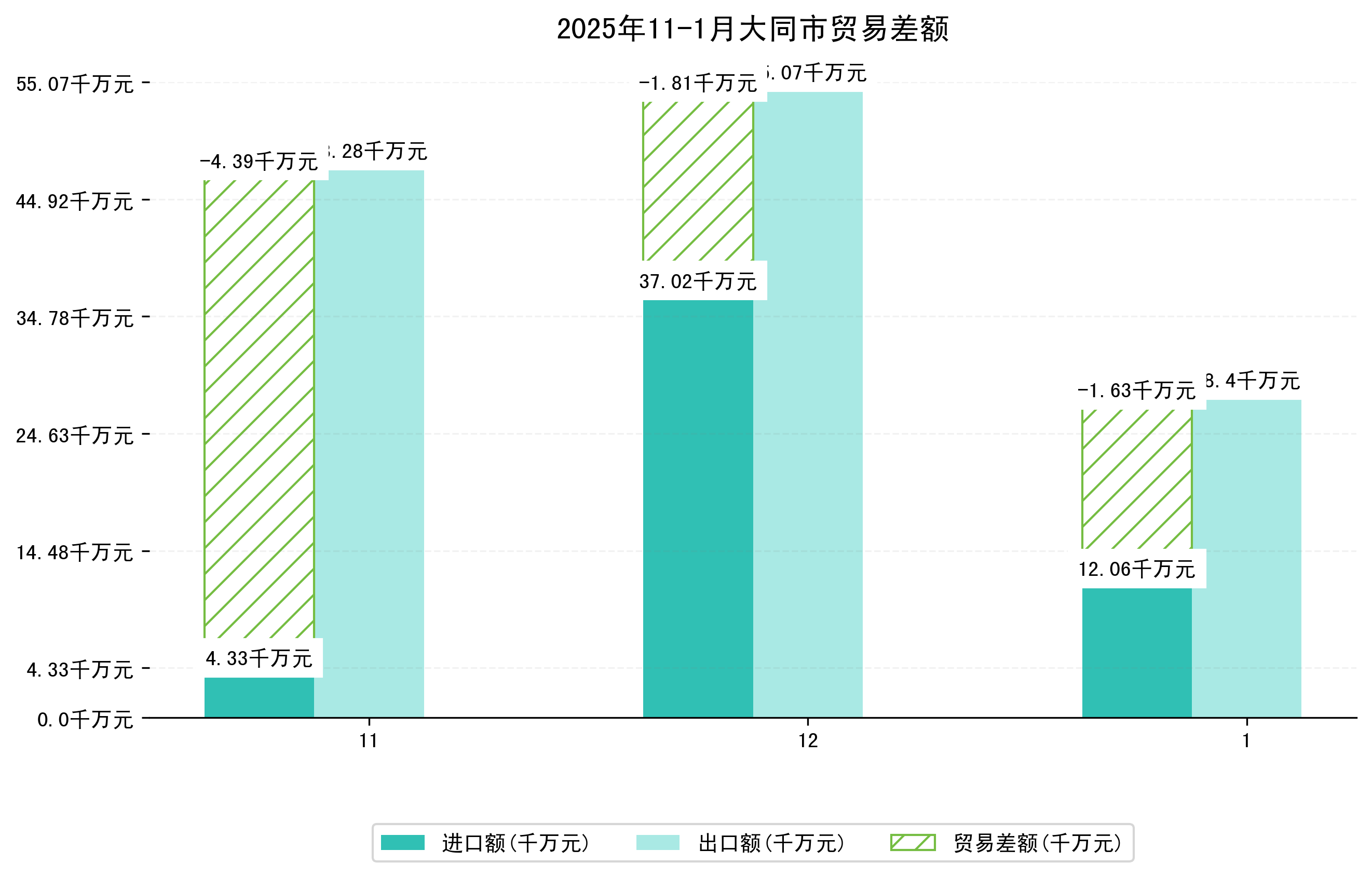 (图四:2025年11-1月大同市贸易差额)