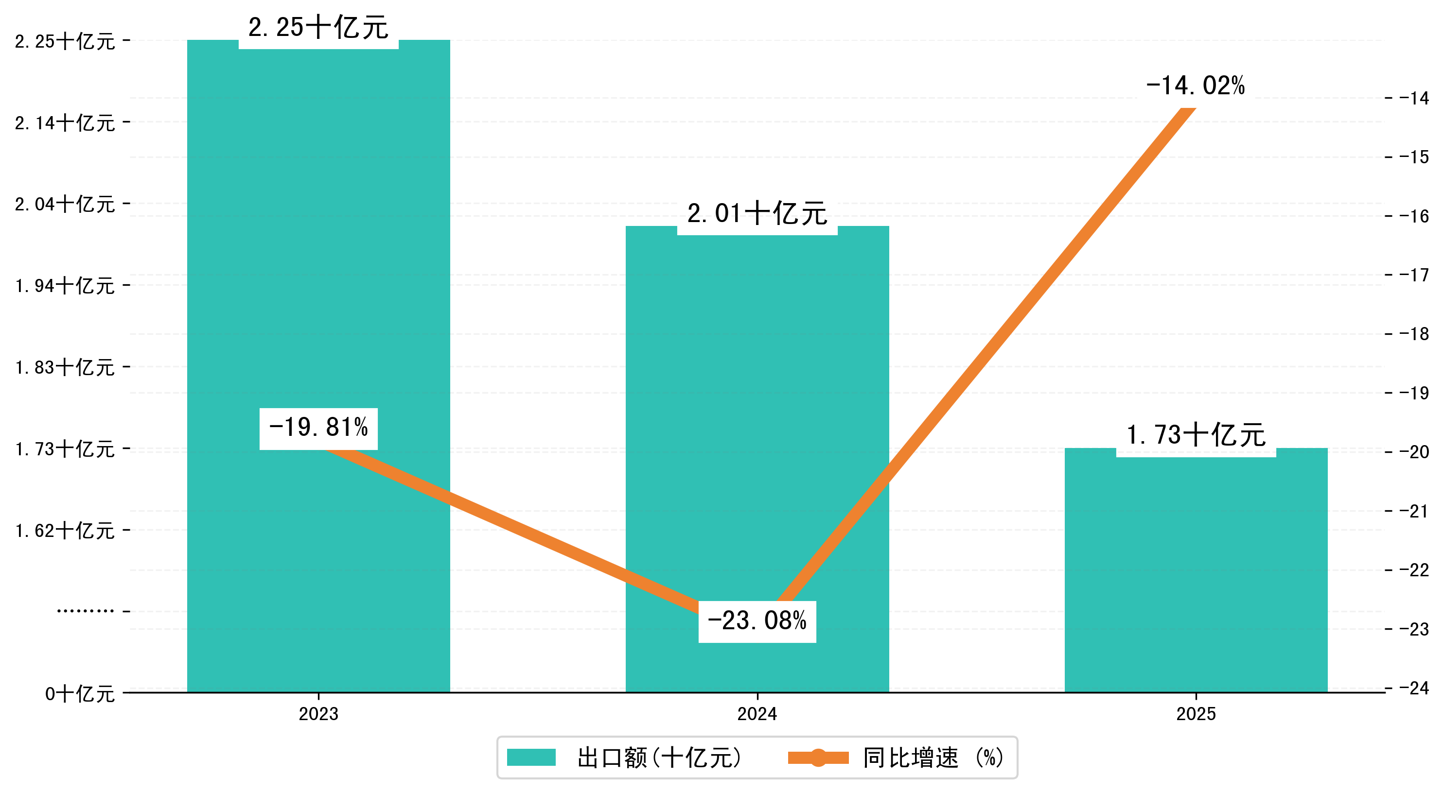 以美元计,2025年1-7月大同市出口额为2,4048.4494万美元,相比上年同期减少了4234.0088万美元,同比减少-15.00%。