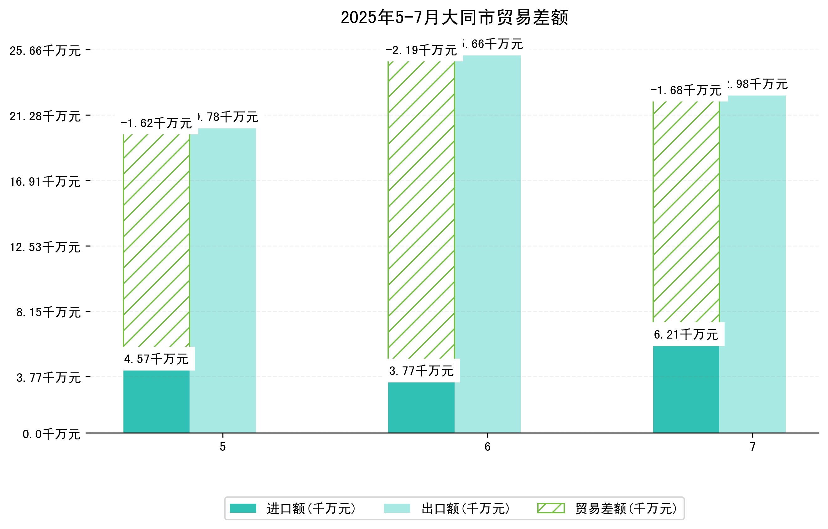 一、2025年7月大同市单月出口总额及进出口差额统计分析