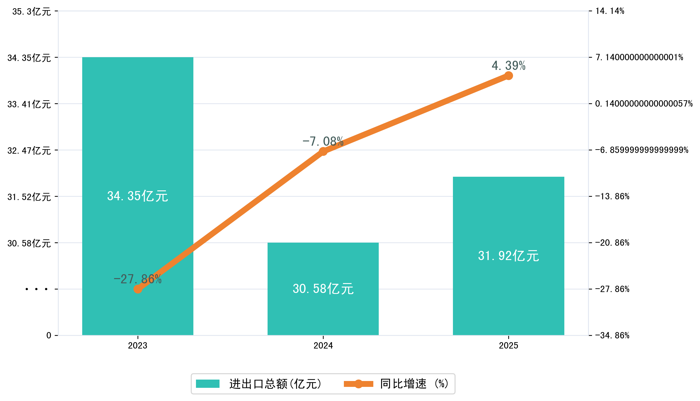 以人民币计,2025年1-10月大同市进出口总额为31,9200.7616万元,相比上年同期增加了1,3428.6587万元,同比增加了4.40%。