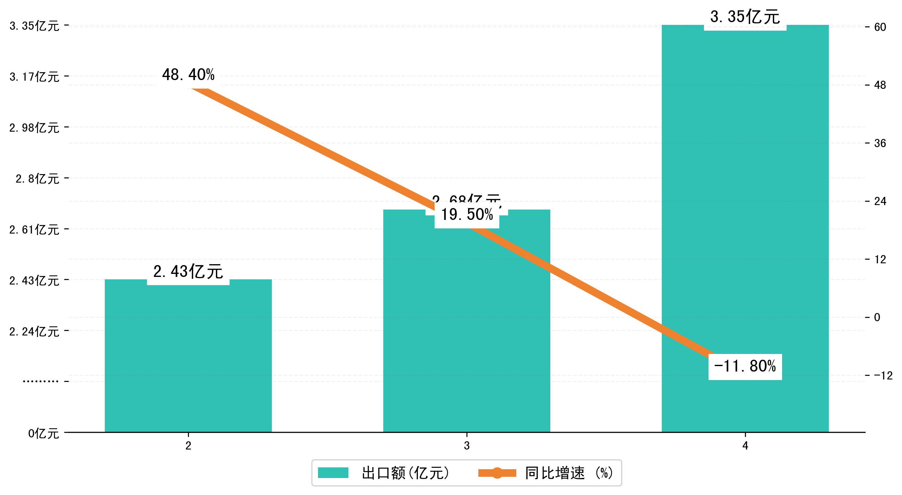 以人民币计,2023年1-4月大同市出口额为11,7876.8839万元,相比上年同期减少了1,5759.1845万元,同比减少了-11.80%。