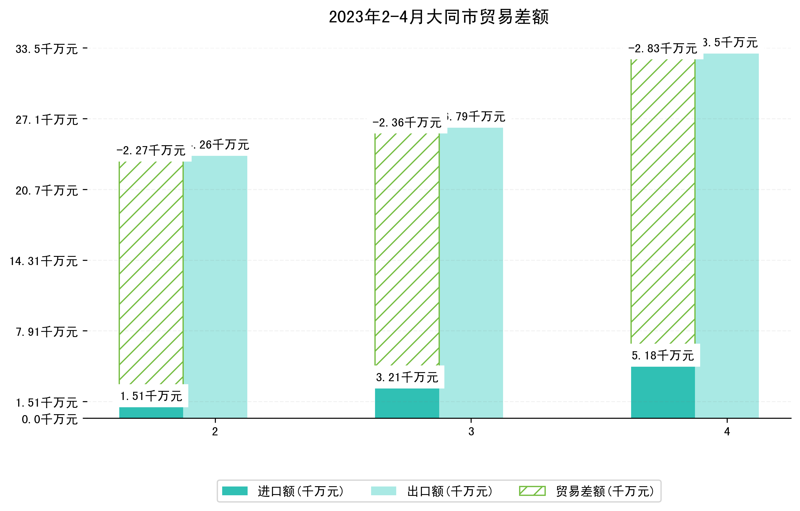 一、2023年4月大同市单月出口总额及进出口差额统计分析