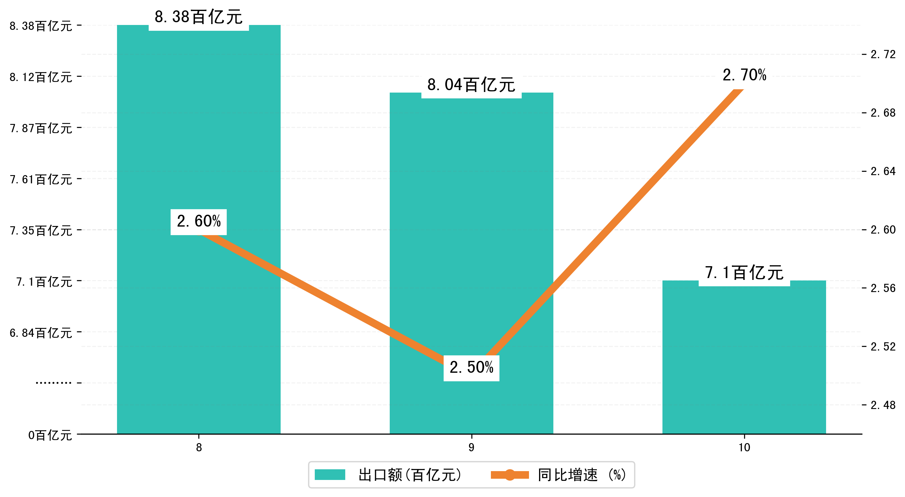 (图二:2024年8-10月东莞市出口额)