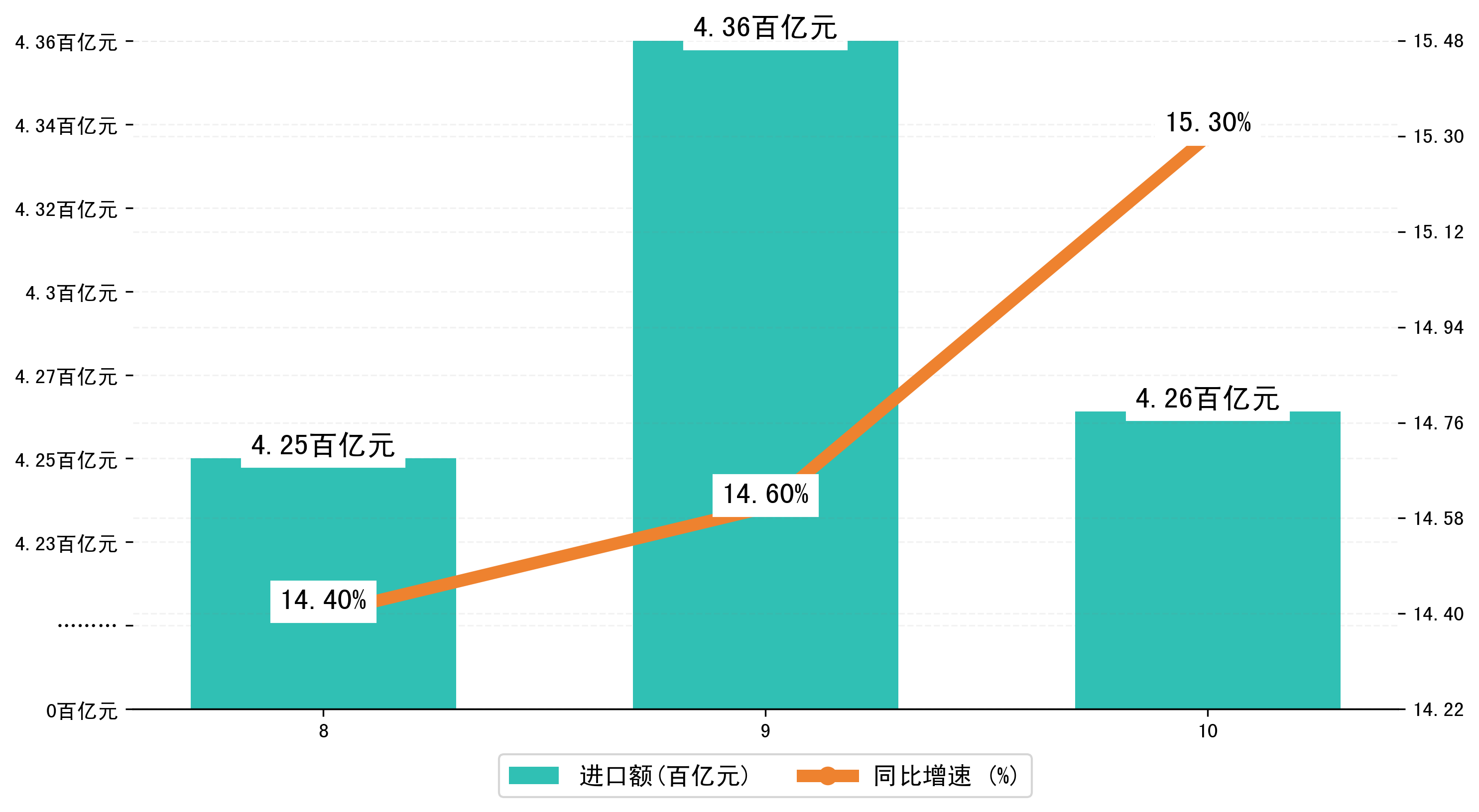 (图三:2024年8-10月东莞市进口额)