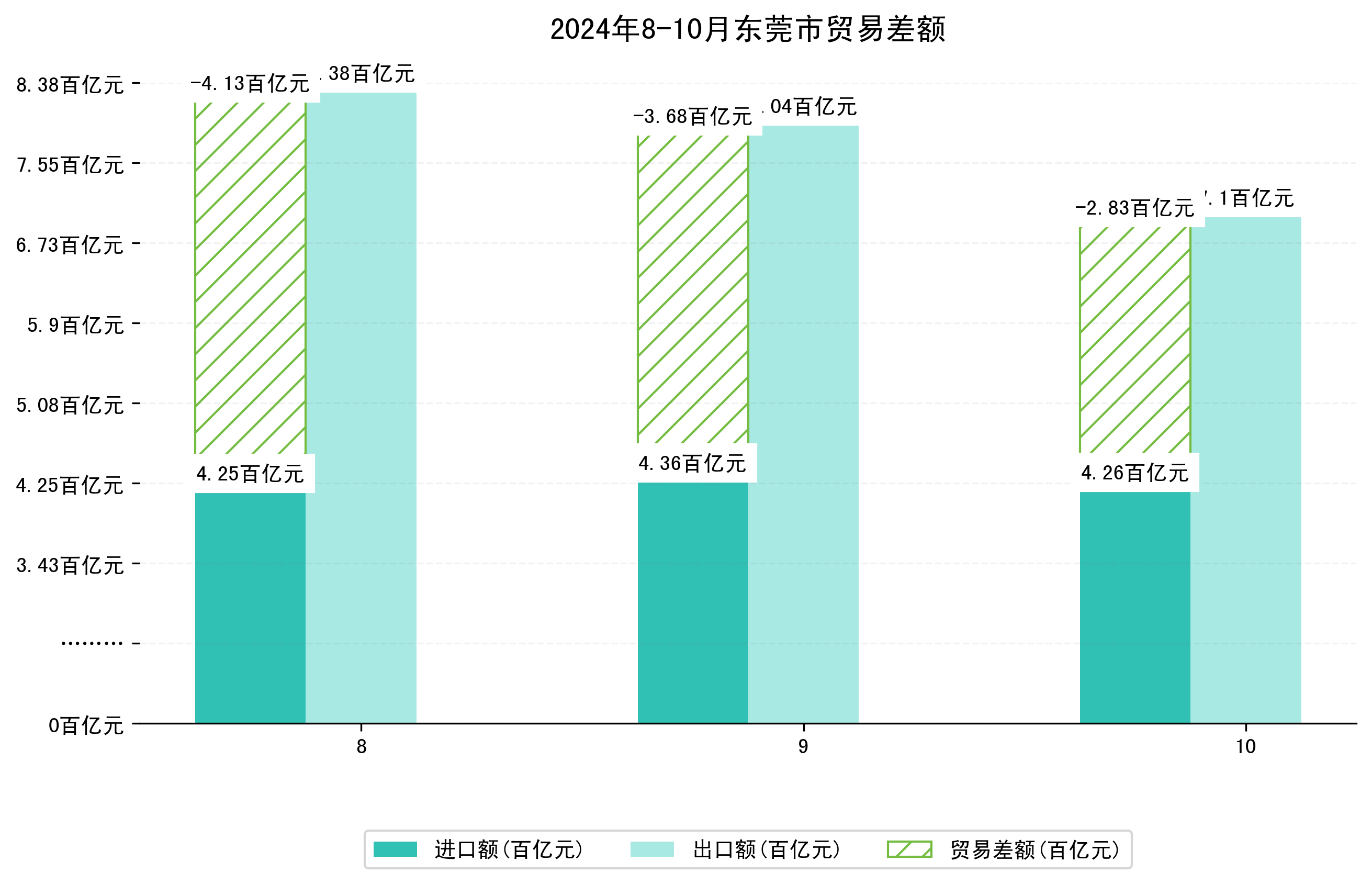 (图四:2024年8-10月东莞市贸易差额)
