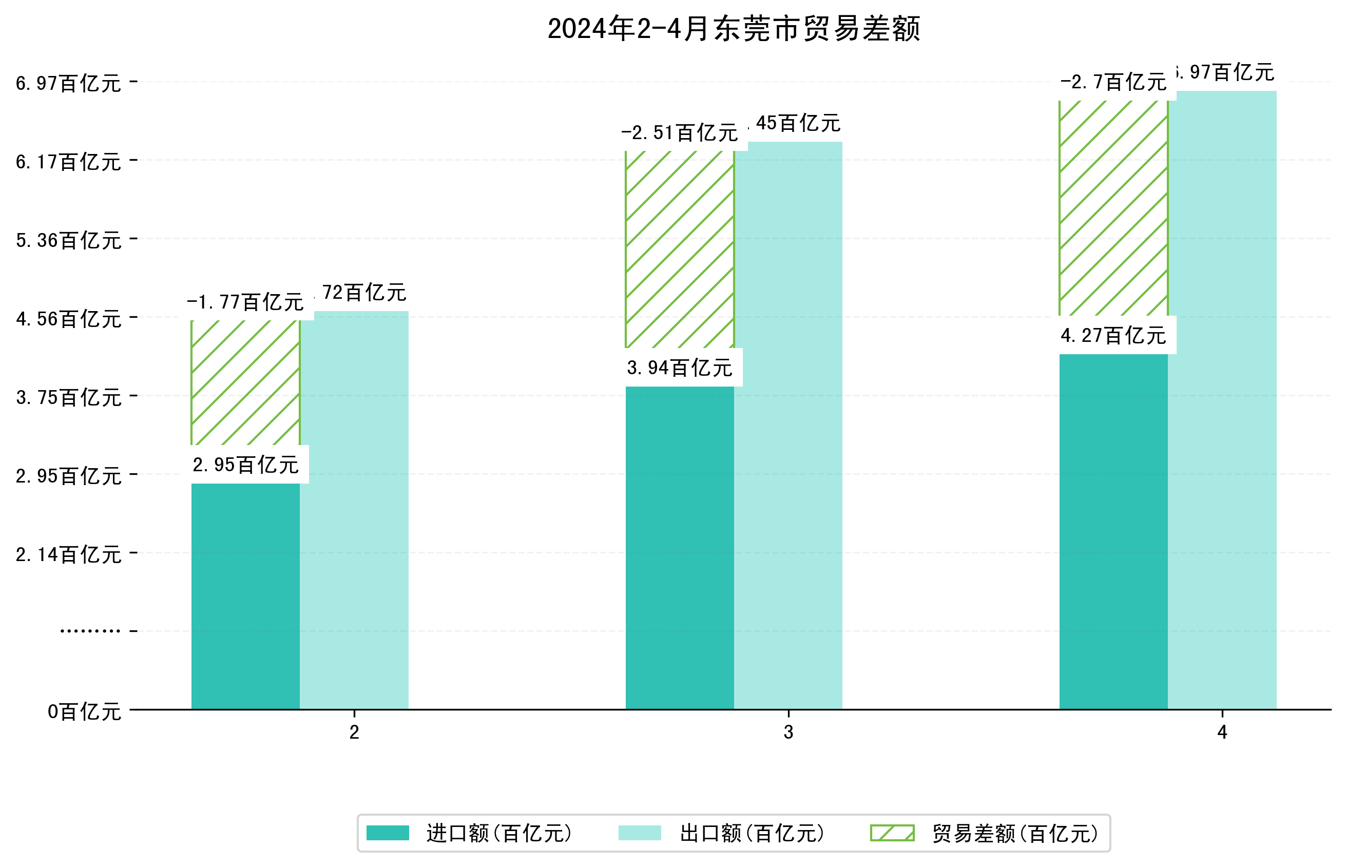 2024年4月东莞市进出口总额及进出口差额统计分析