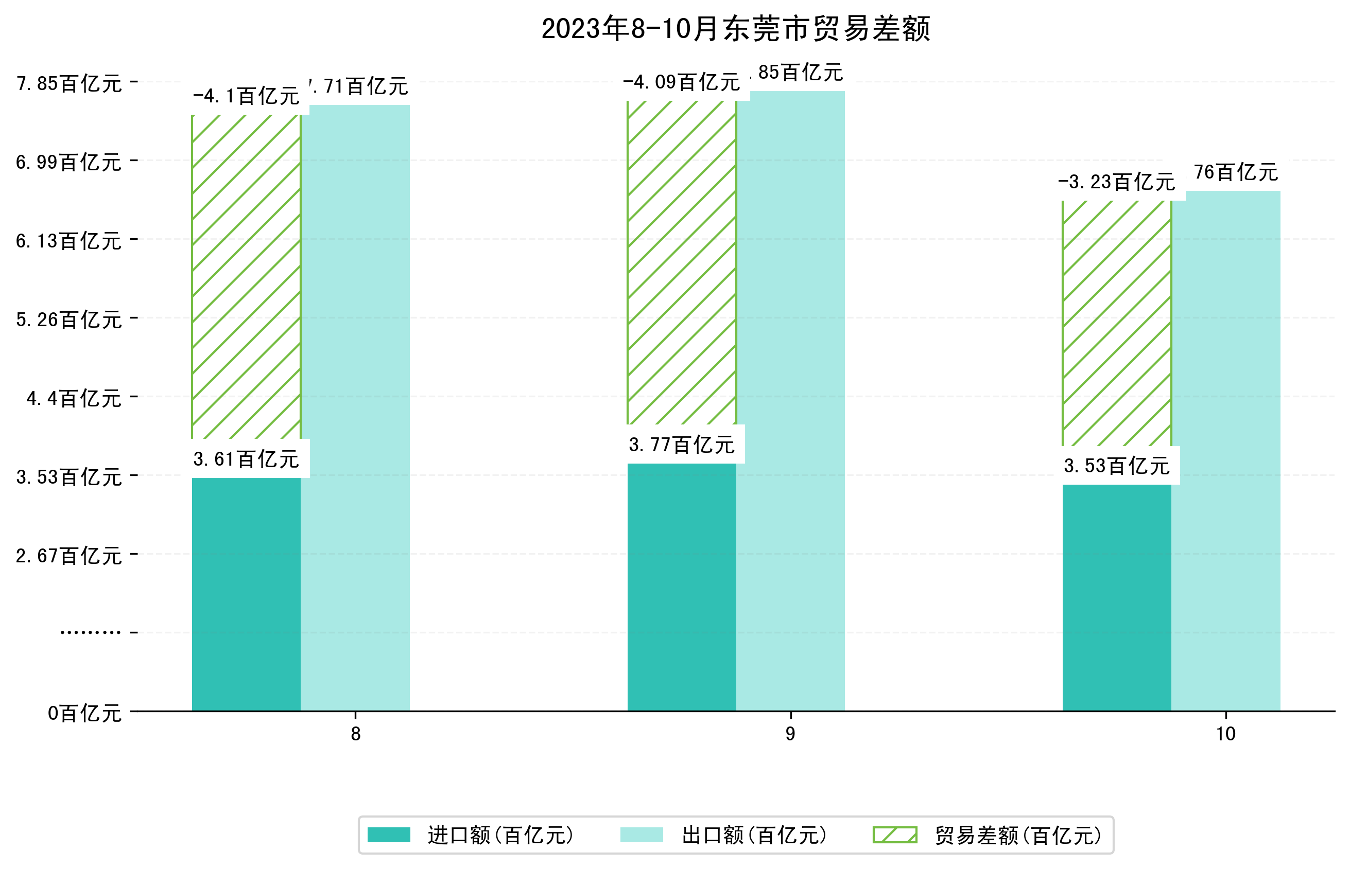 2023年10月东莞市进出口总额及进出口差额统计分析
