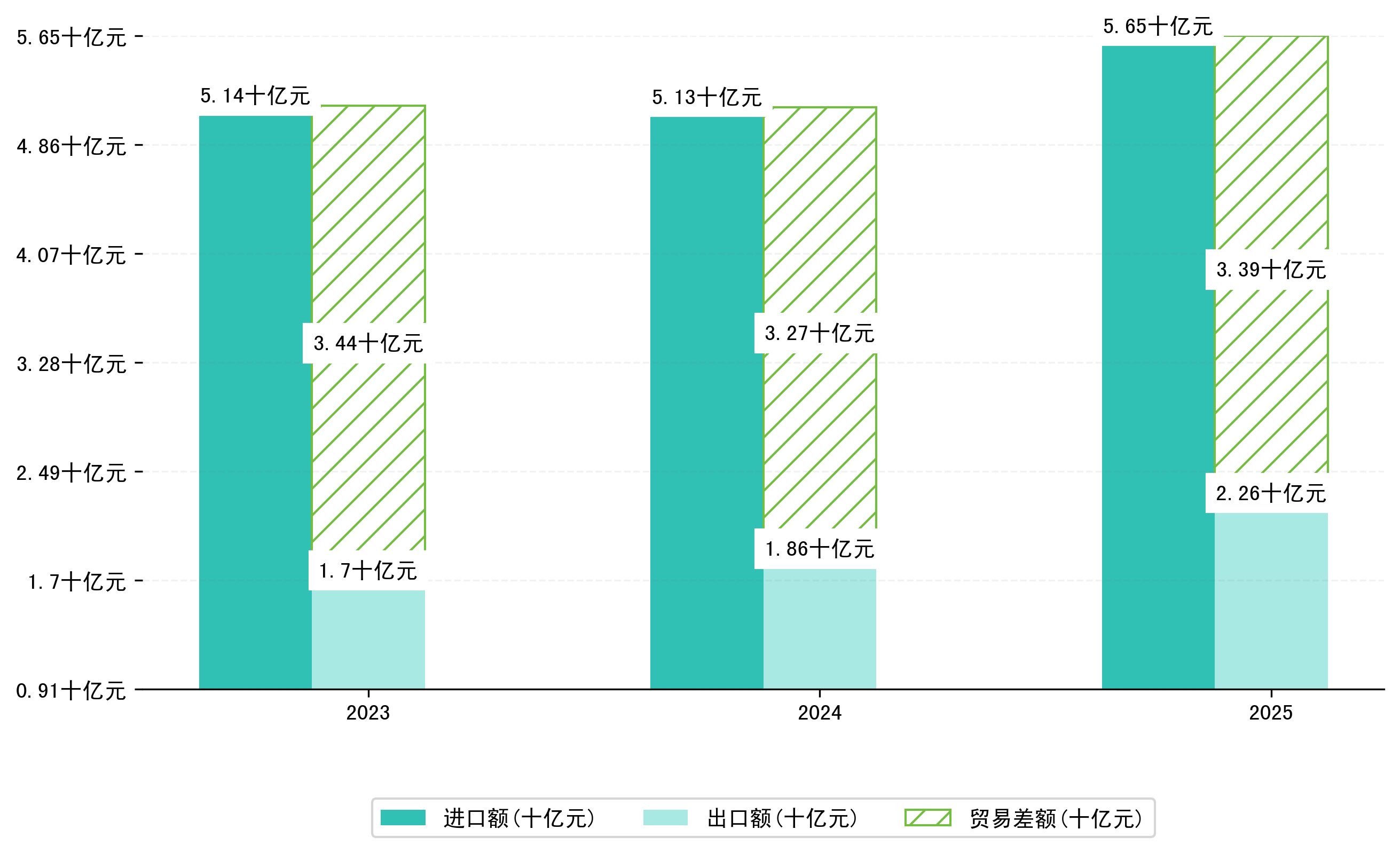 以人民币计,2025年1-6月池州市贸易差额为33,8535,3248万元(贸易逆差),相比上年同期减少了1,1052,2468万元,同比减少3.37%。