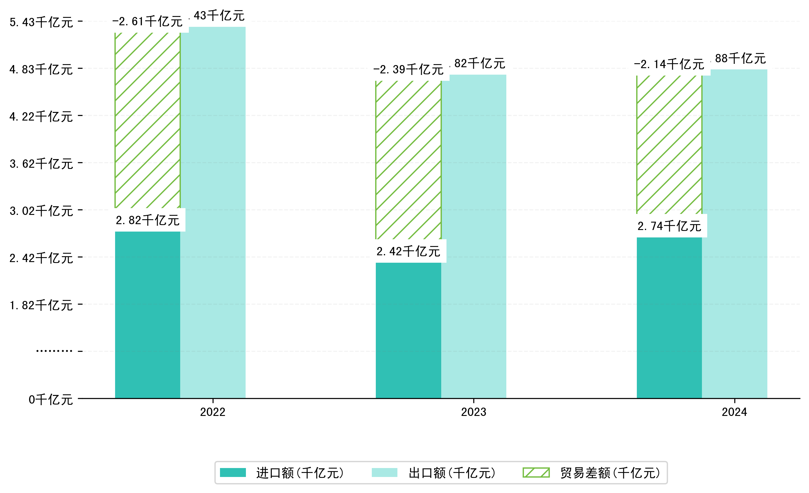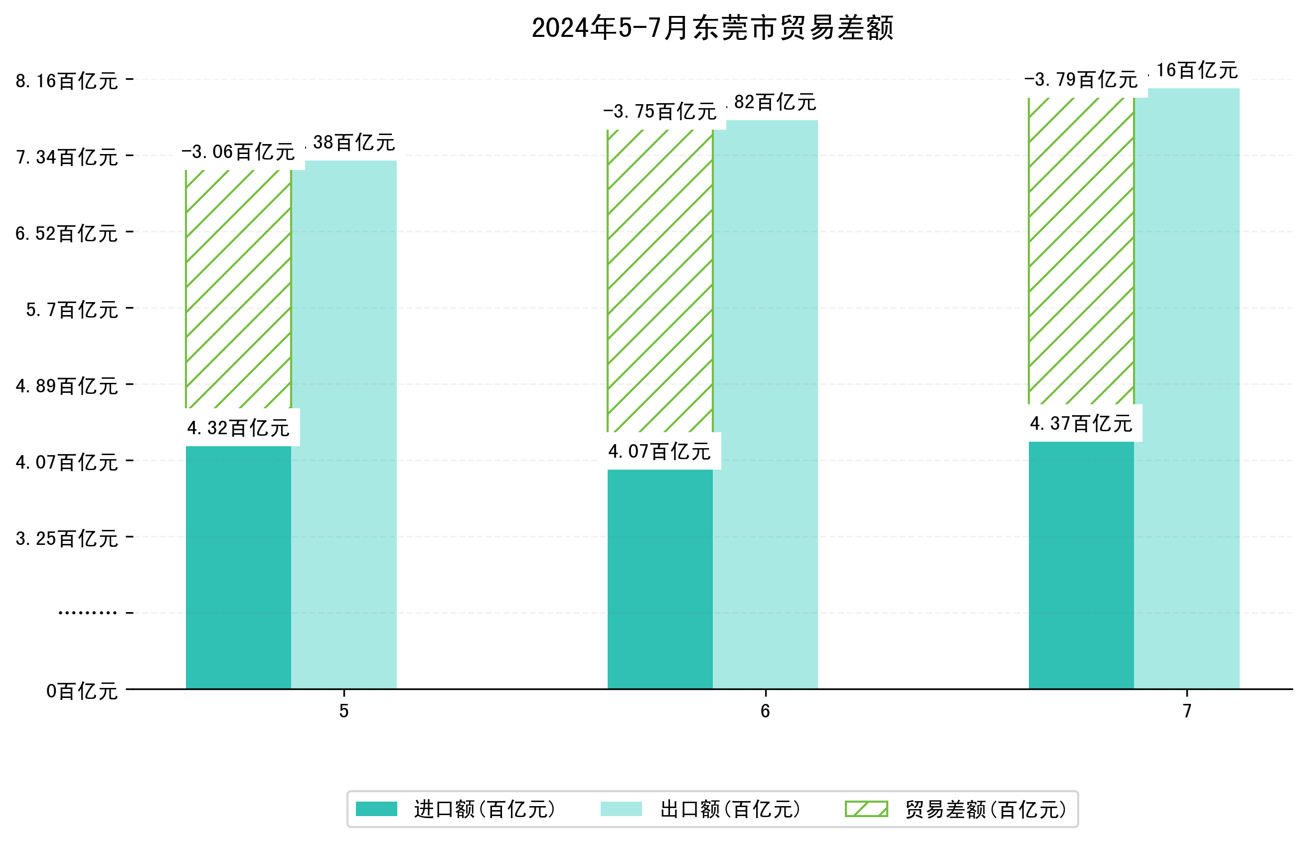 以人民币计,2024年7月东莞市贸易差额为378,7601,4403万元(贸易顺差),相比上月增加了4,1124,4501万元,即5121,7445万美元;相比上年同期增加了47,7973,2474万元,同比增加14.44%。