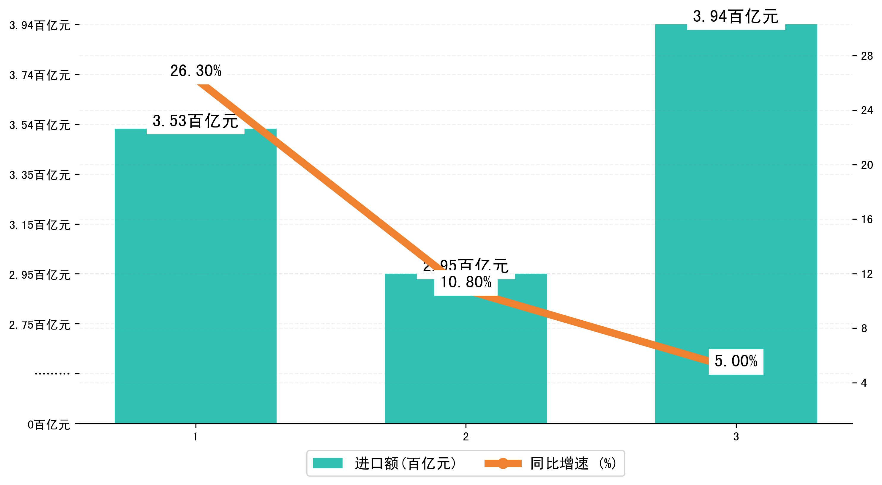 以人民币计,2024年3月东莞市进口额为394,1950.1545万元,相比上月增加了99,3140.2719万元;相比上年同期减少了17,6992.3298万元,同比增加了5.00%。