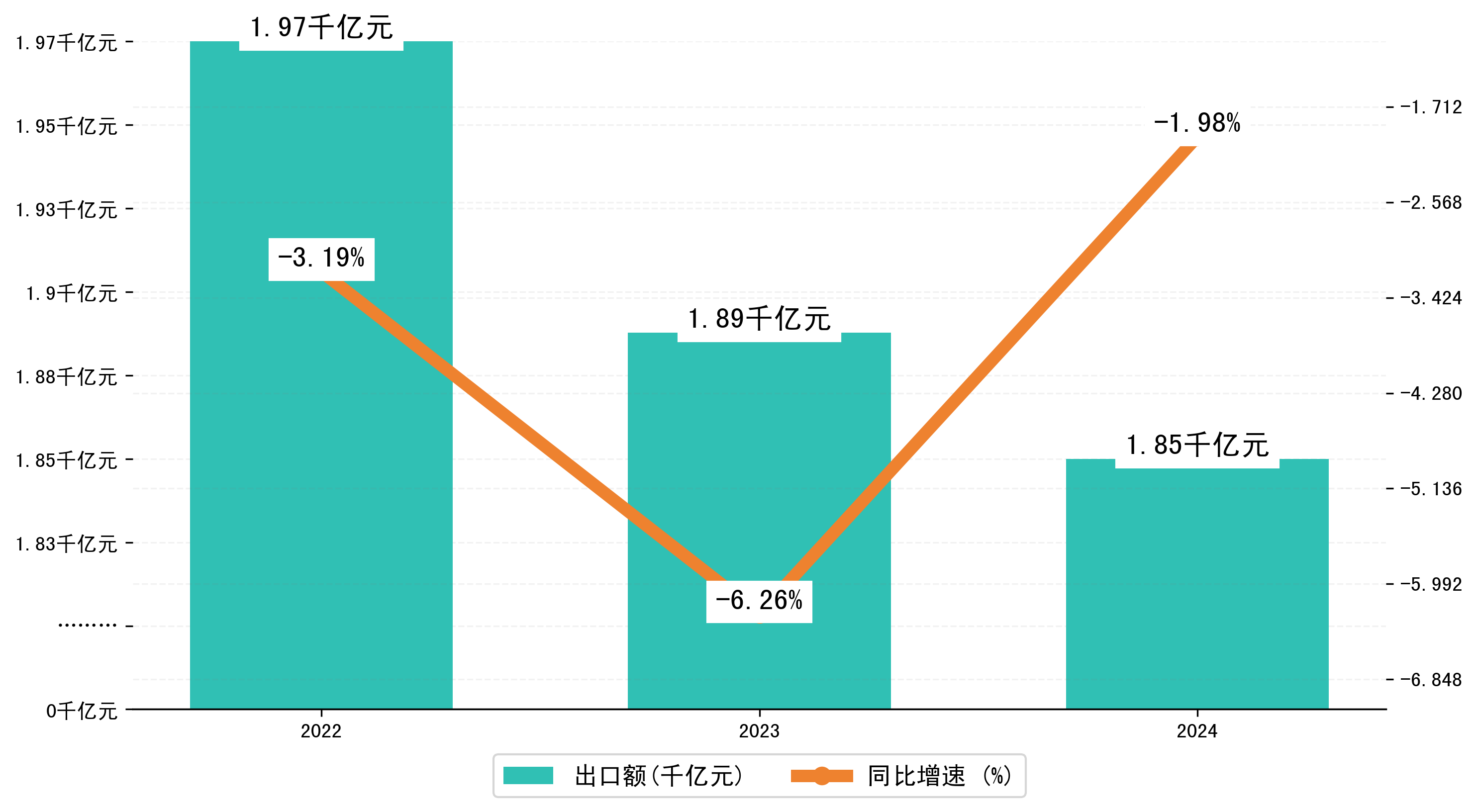 以美元计,2024年1-3月东莞市出口额为260,5083.7548万美元,相比上年同期减少了14,7406.9167万美元,同比减少-5.00%。