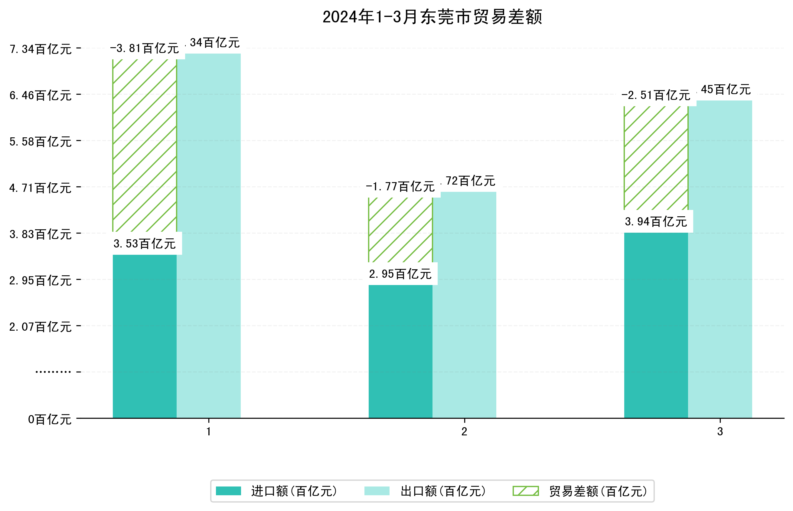 2024年3月东莞市进出口总额及进出口差额统计分析