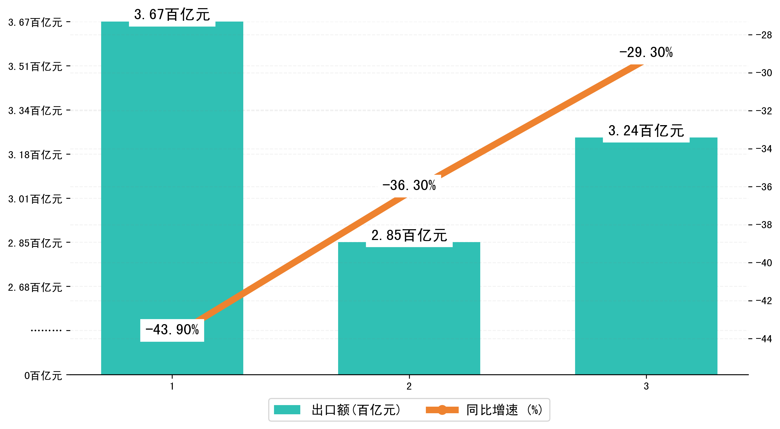 以人民币计,2024年3月河南省出口额为323,8468.3871万元,相比上月增加了39,1626.5521万元;相比上年同期减少了51,7573.9601万元,同比减少了-29.30%。