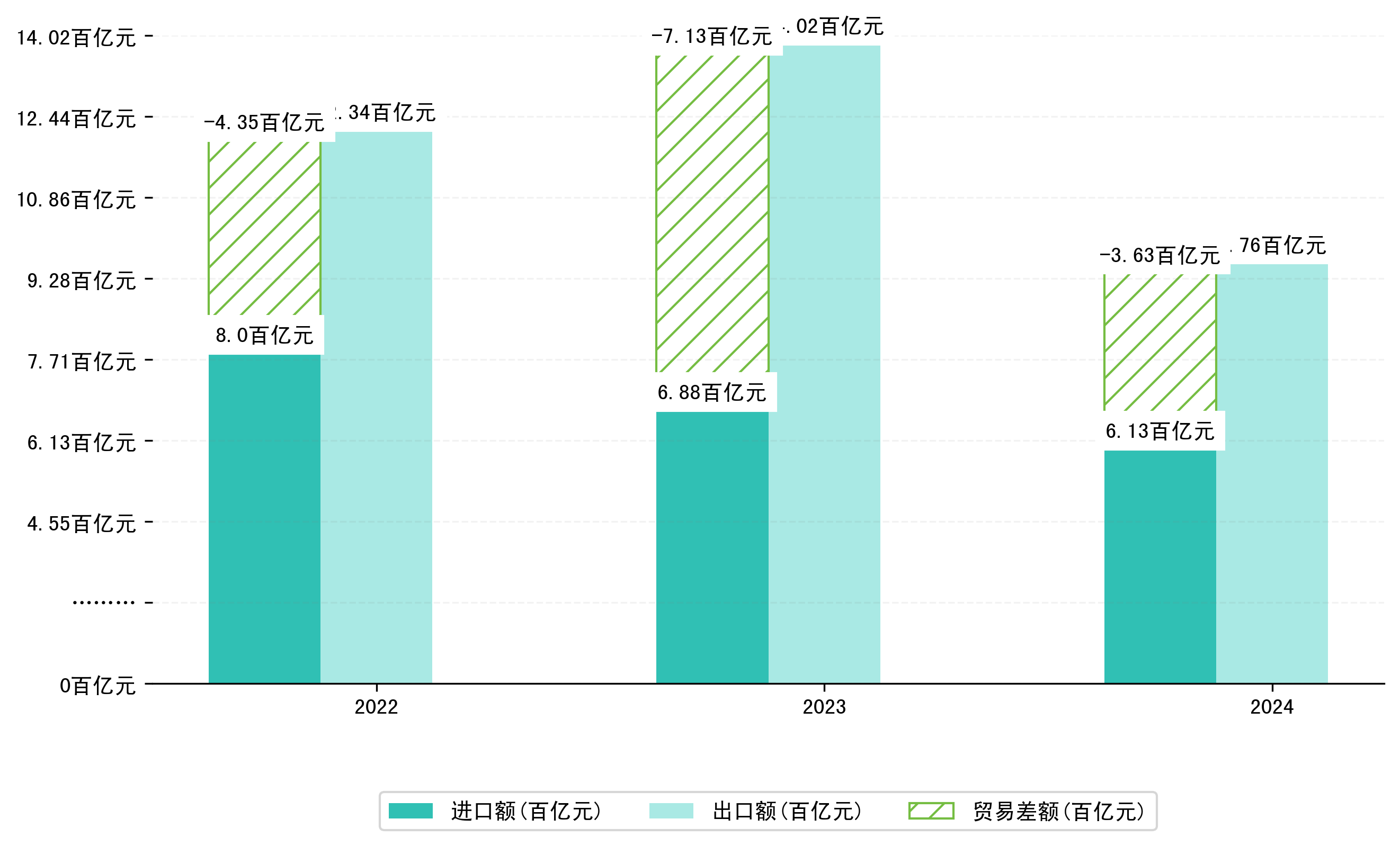 以美元计,2024年1-3月河南省进口额为86,2447.2977万美元,相比上年同期减少了13,7769.0037万美元,同比减少-14.30%。