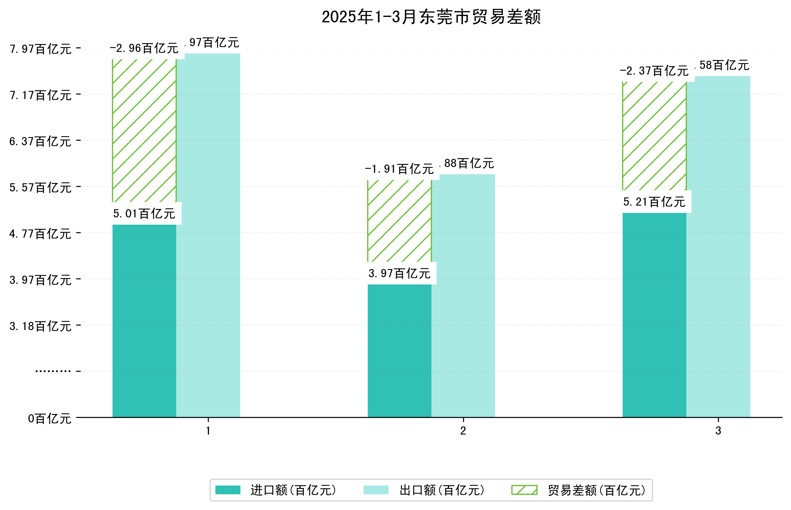 (图四:2025年1-3月东莞市贸易差额)