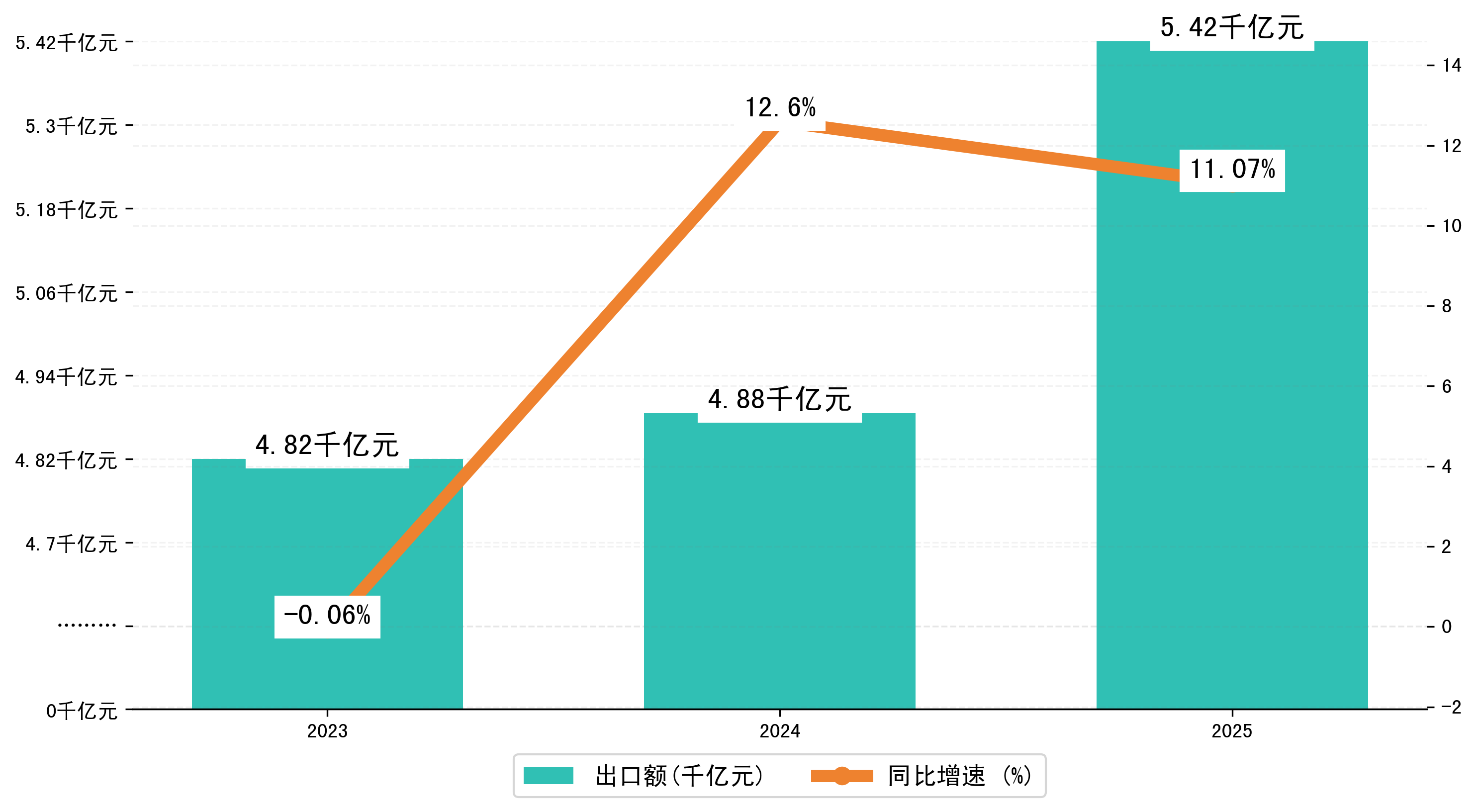 以人民币计,2025年1-7月东莞市出口额为5423,5565.1388万元,相比上年同期增加了540,5506.5211万元,同比增加了9.80%。
