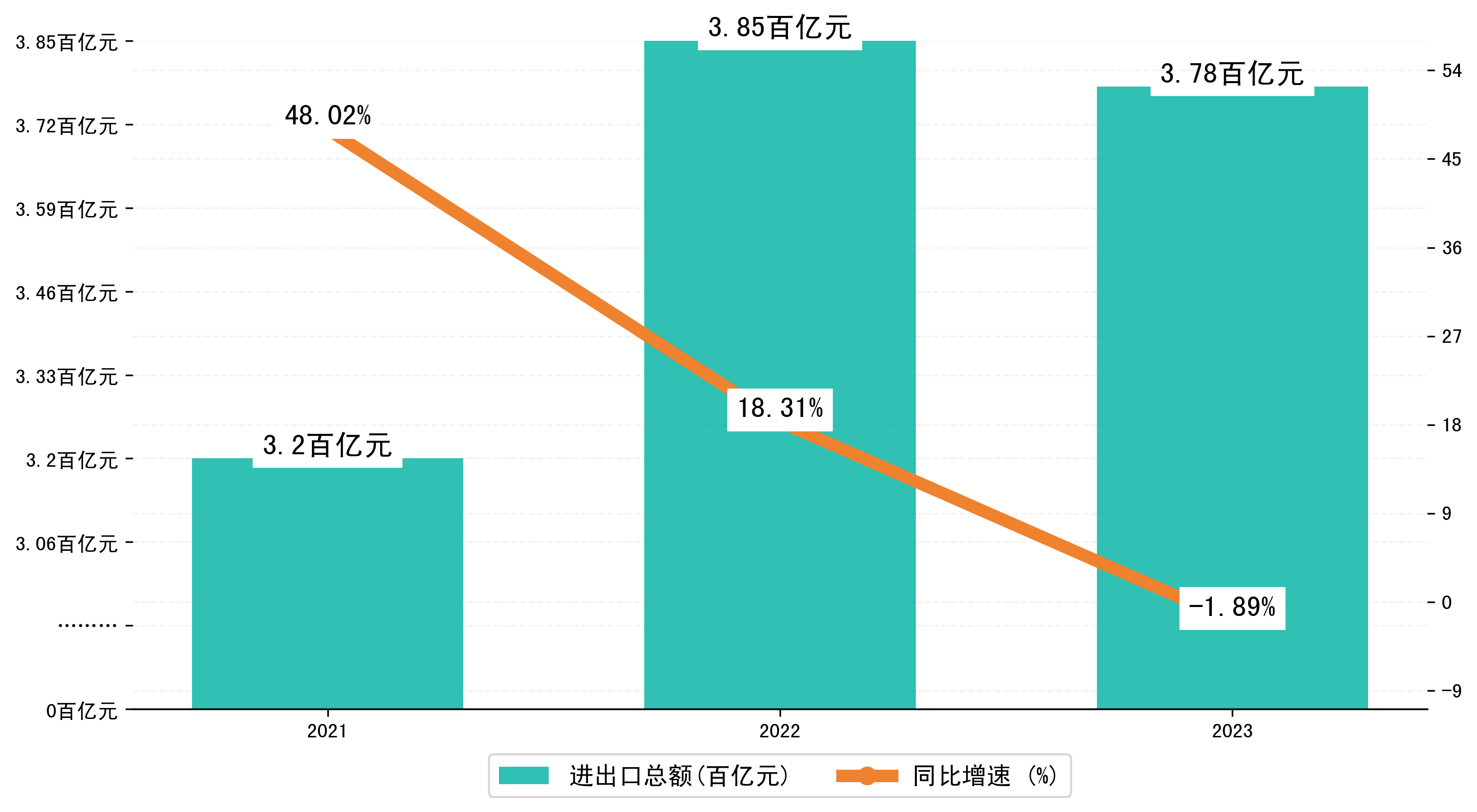 以人民币计,2023年1-5月连云港市进出口总额为378,1293.5813万元,相比上年同期减少了7,2722.135万元,同比减少了-3.00%。