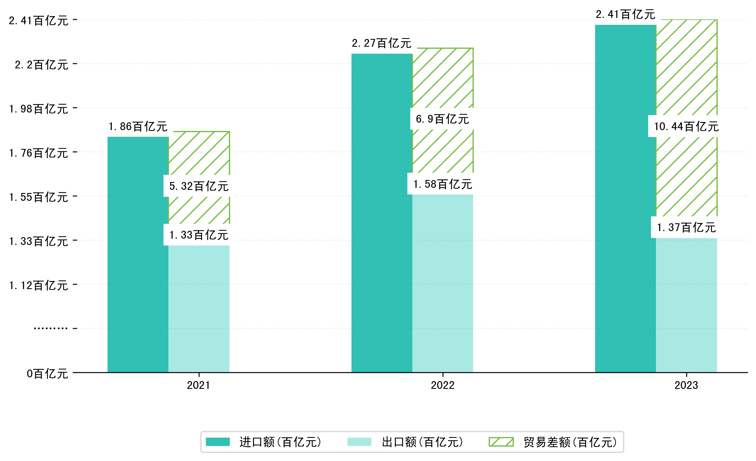 以人民币计,2023年5月连云港市贸易差额为33,5551,2930万元(贸易逆差),相比上月减少了28,5140,6743万元,即4,1411,8289万美元;相比上年同期减少了12,7445,6797万元,同比减少61.24%。