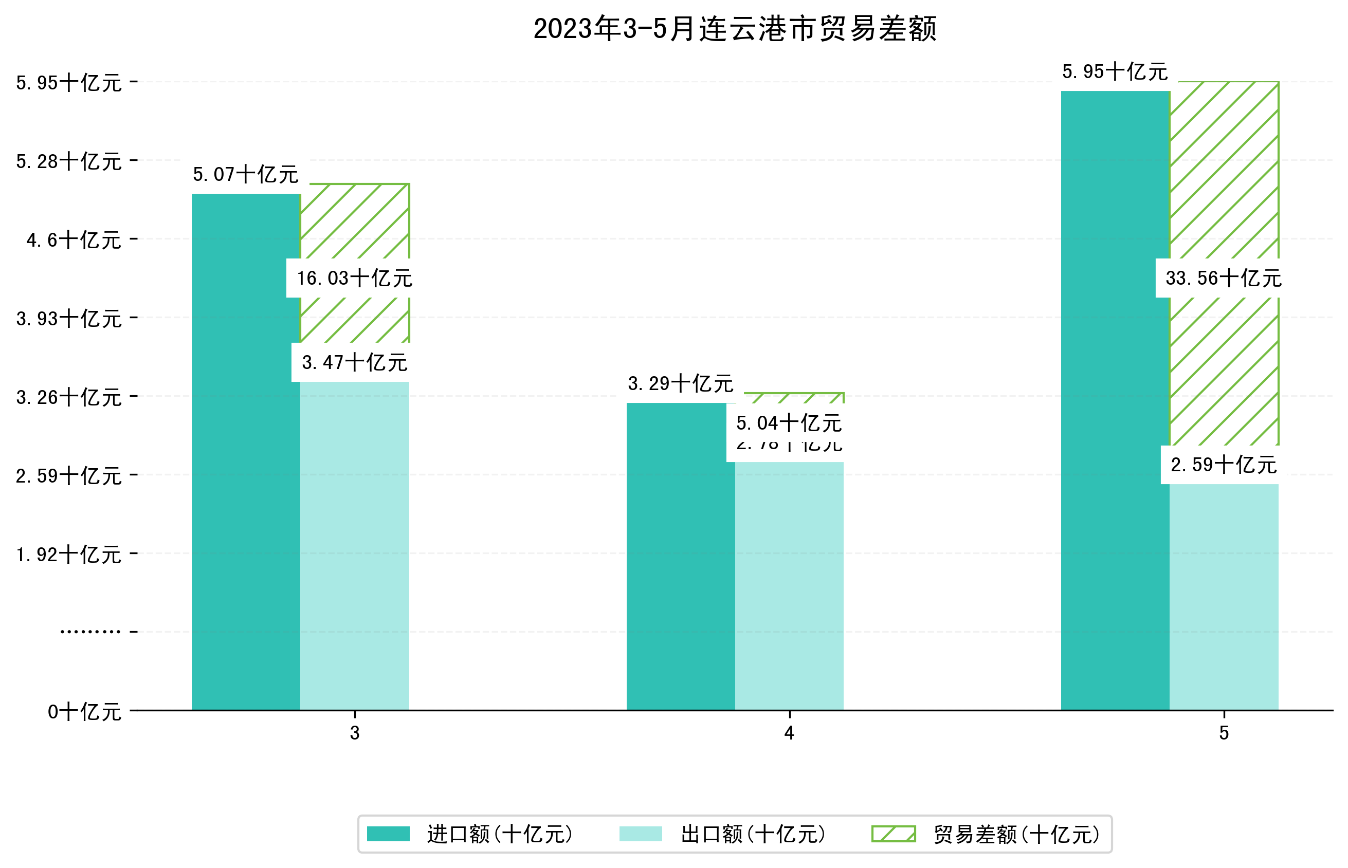 2023年5月连云港市进出口总额及进出口差额统计分析
