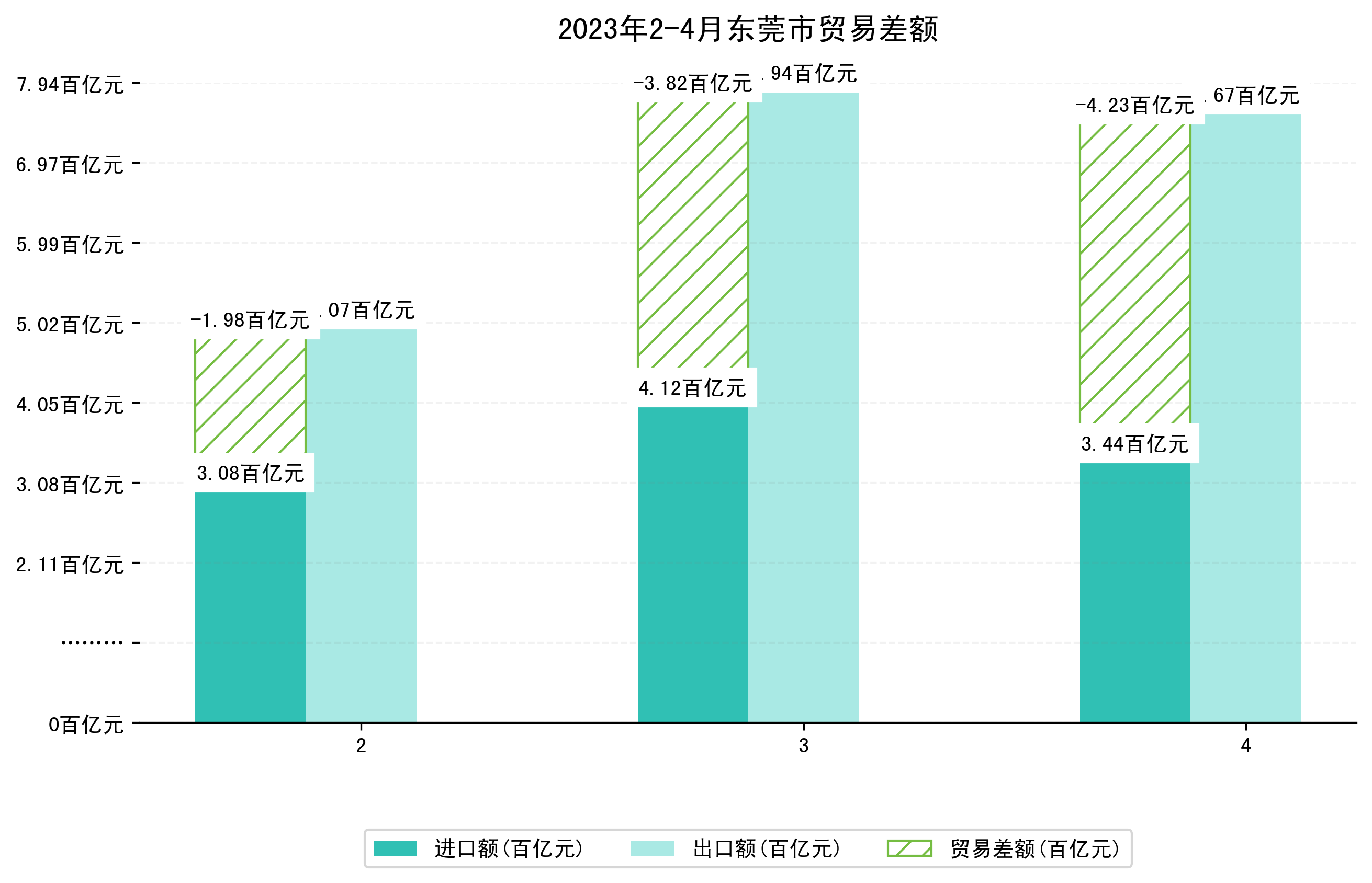 2023年4月东莞市进出口总额及进出口差额统计分析