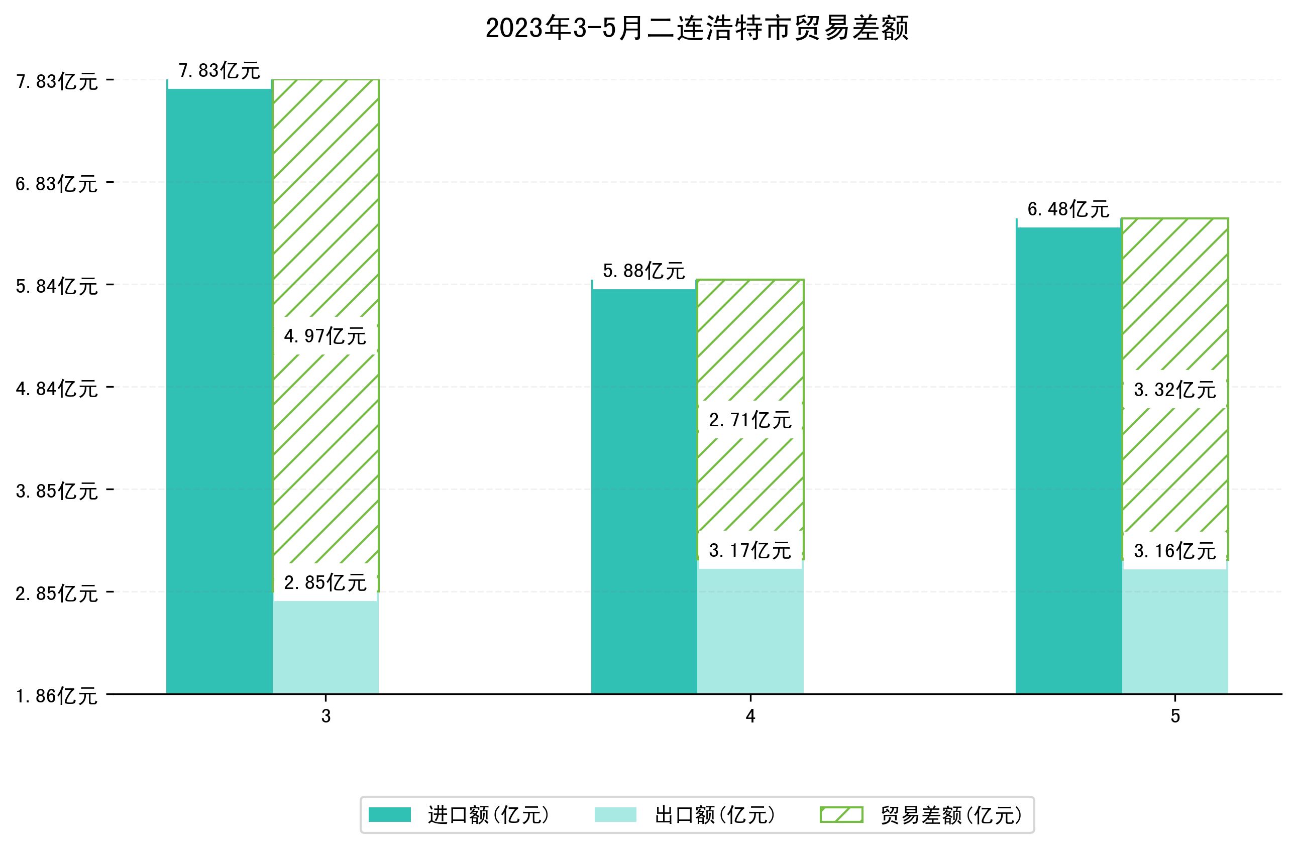 (图四:2023年3-5月二连浩特市贸易差额)