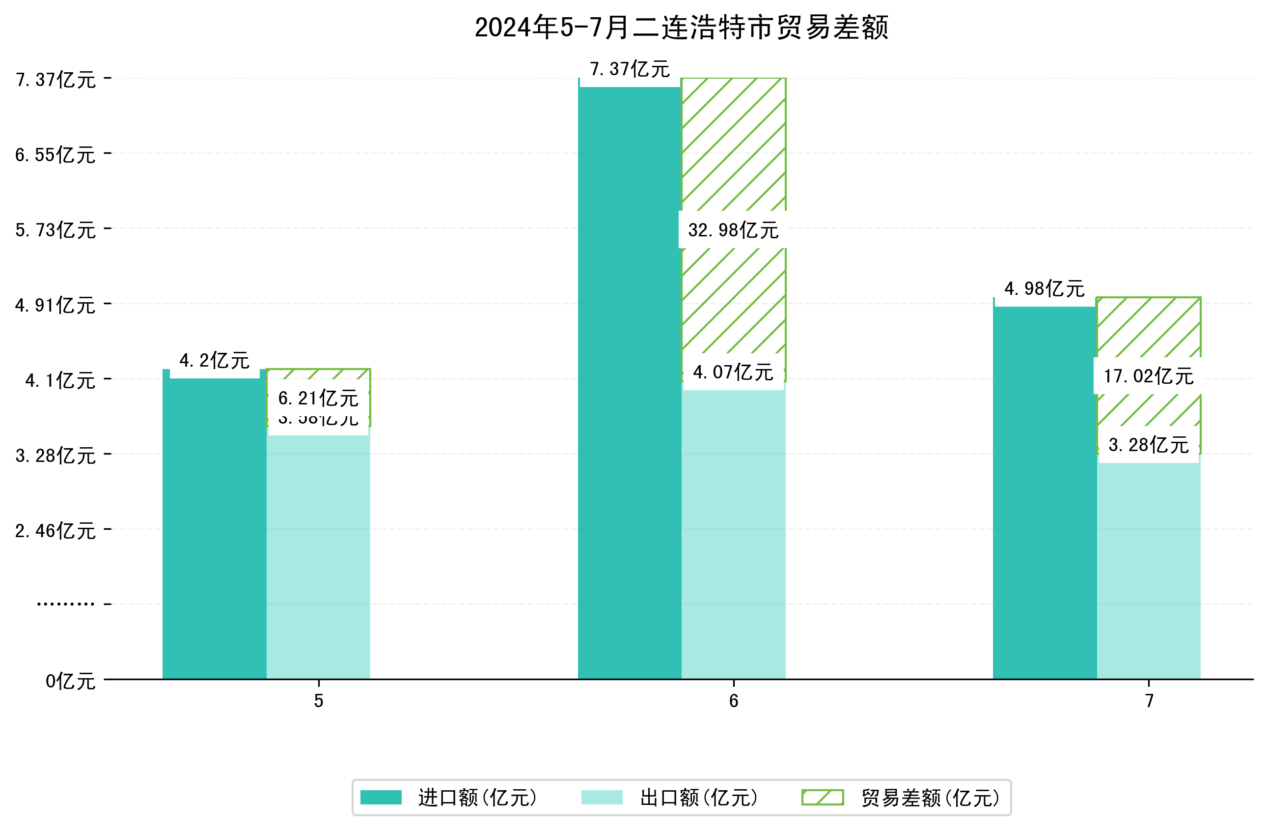 2024年7月二连浩特市进出口总额及进出口差额统计分析