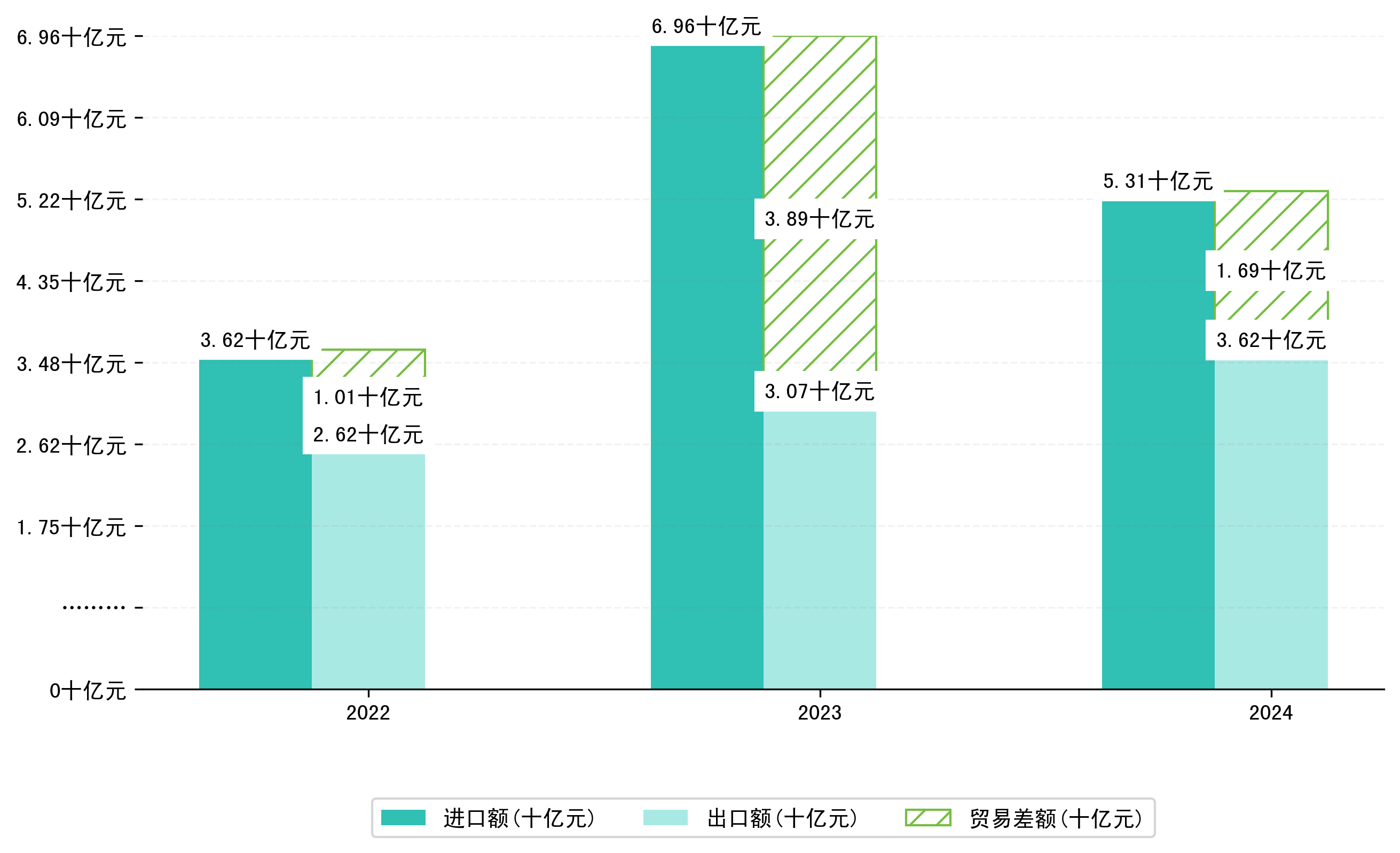 以美元计,2024年11月二连浩特市贸易差额为1012,3968万美元(贸易逆差),相比上月增加了850,3145万美元;相比上年同期增加了1679,3532万美元,同比增加-62.39%。