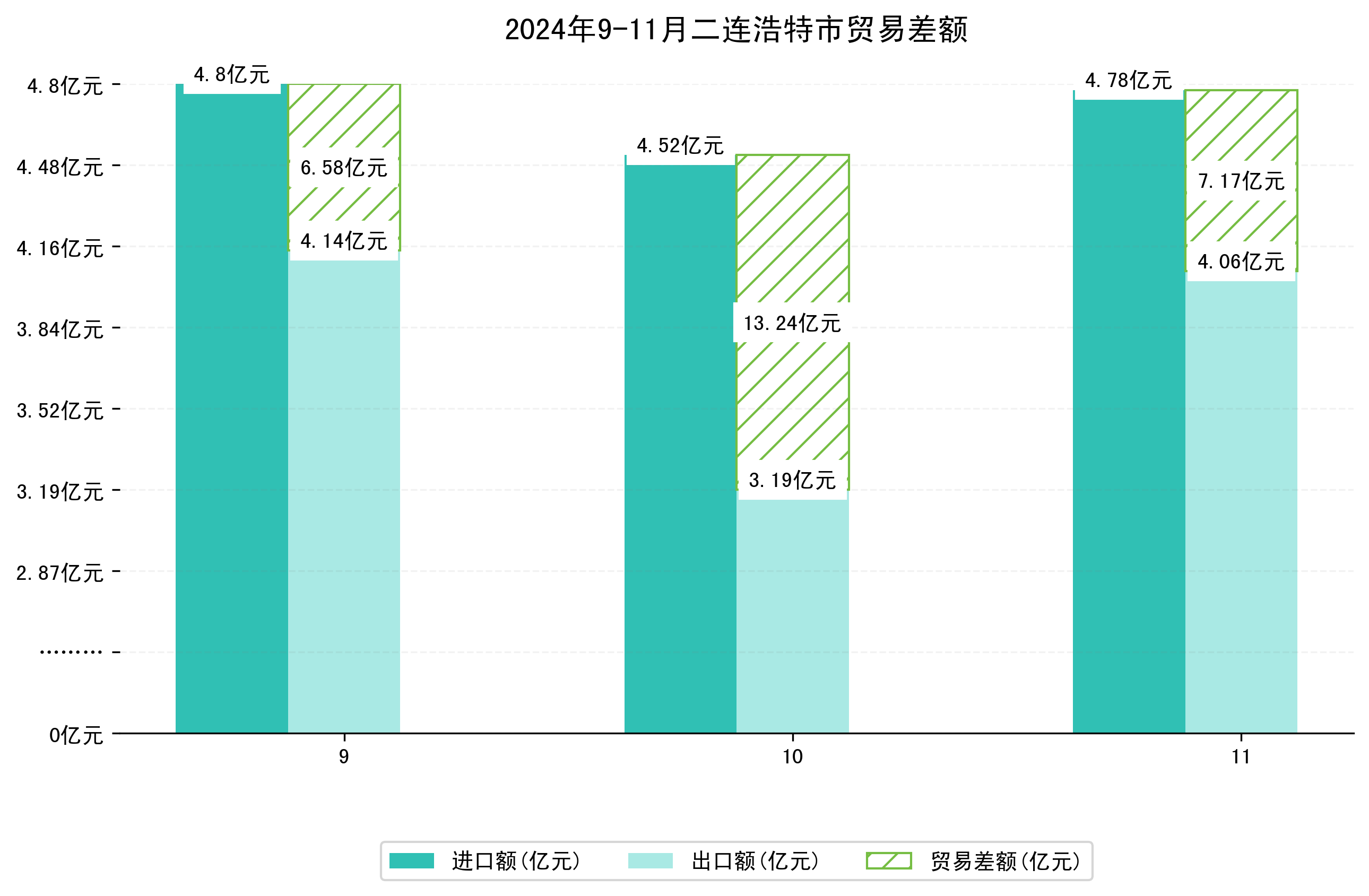 2024年11月二连浩特市进出口总额及进出口差额统计分析
