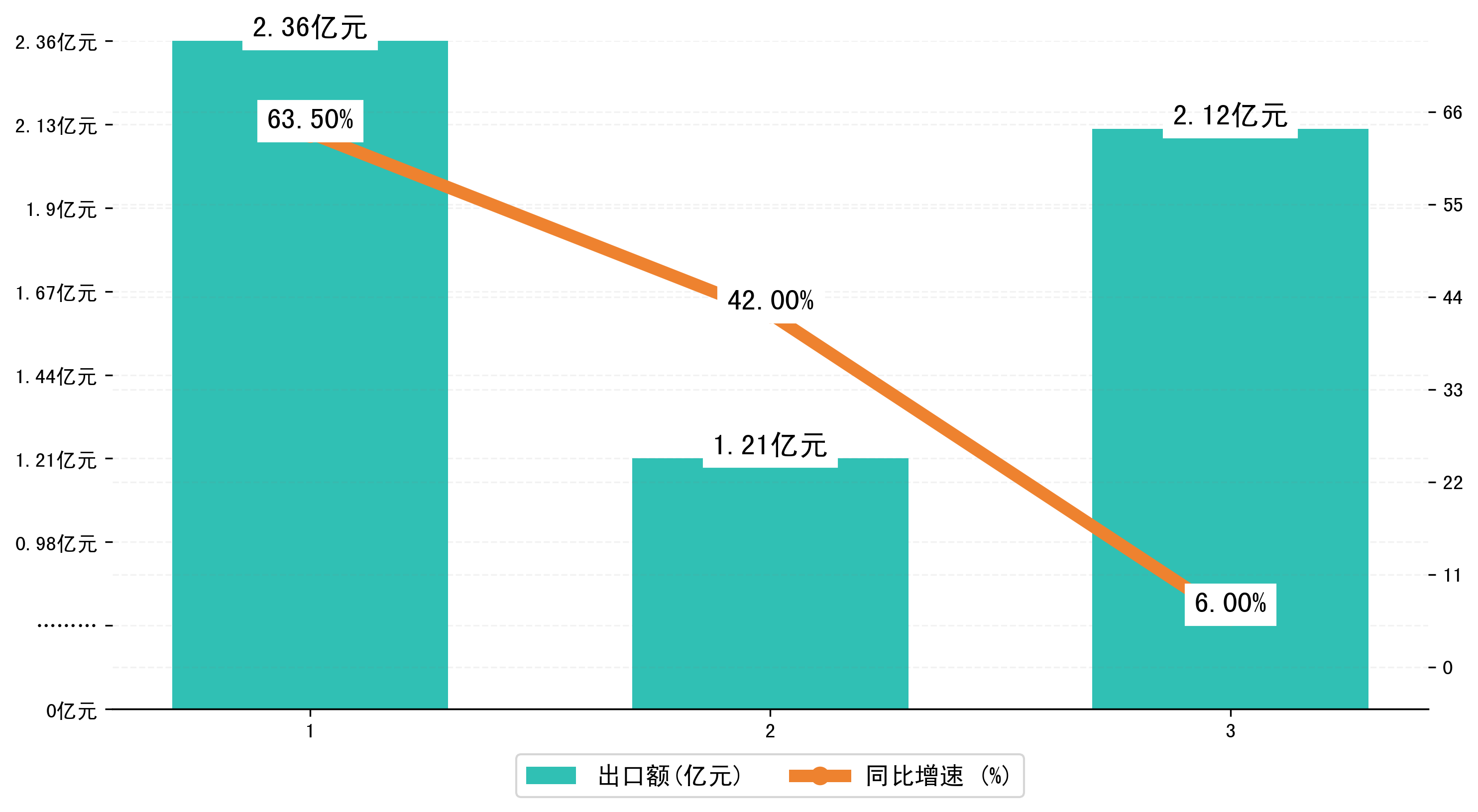 以人民币计,2024年1-3月二连浩特市出口额为5,6949.1161万元,相比上年同期增加了3243.755万元,同比增加了6.00%。