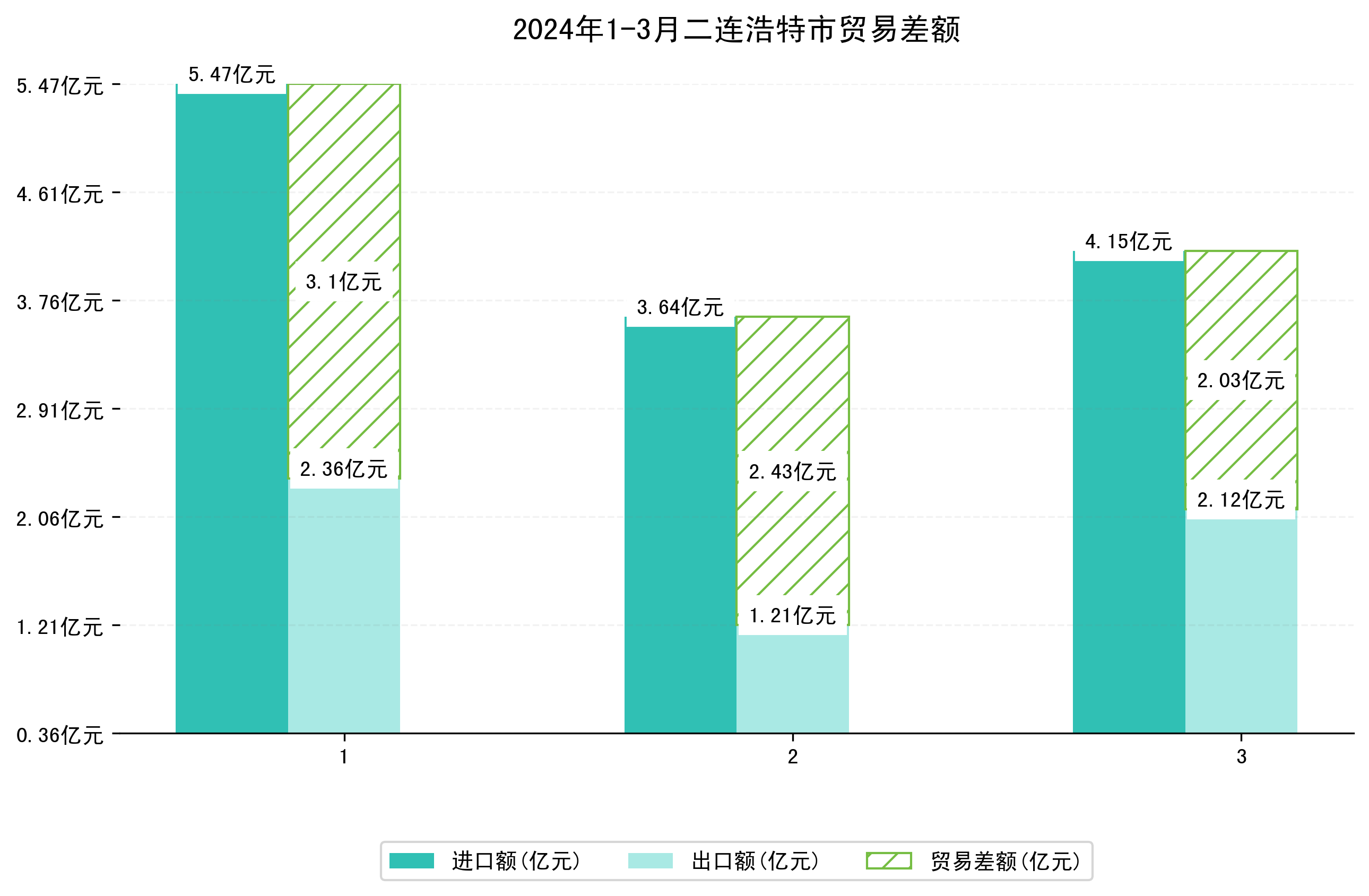 2024年3月二连浩特市进出口总额及进出口差额统计分析