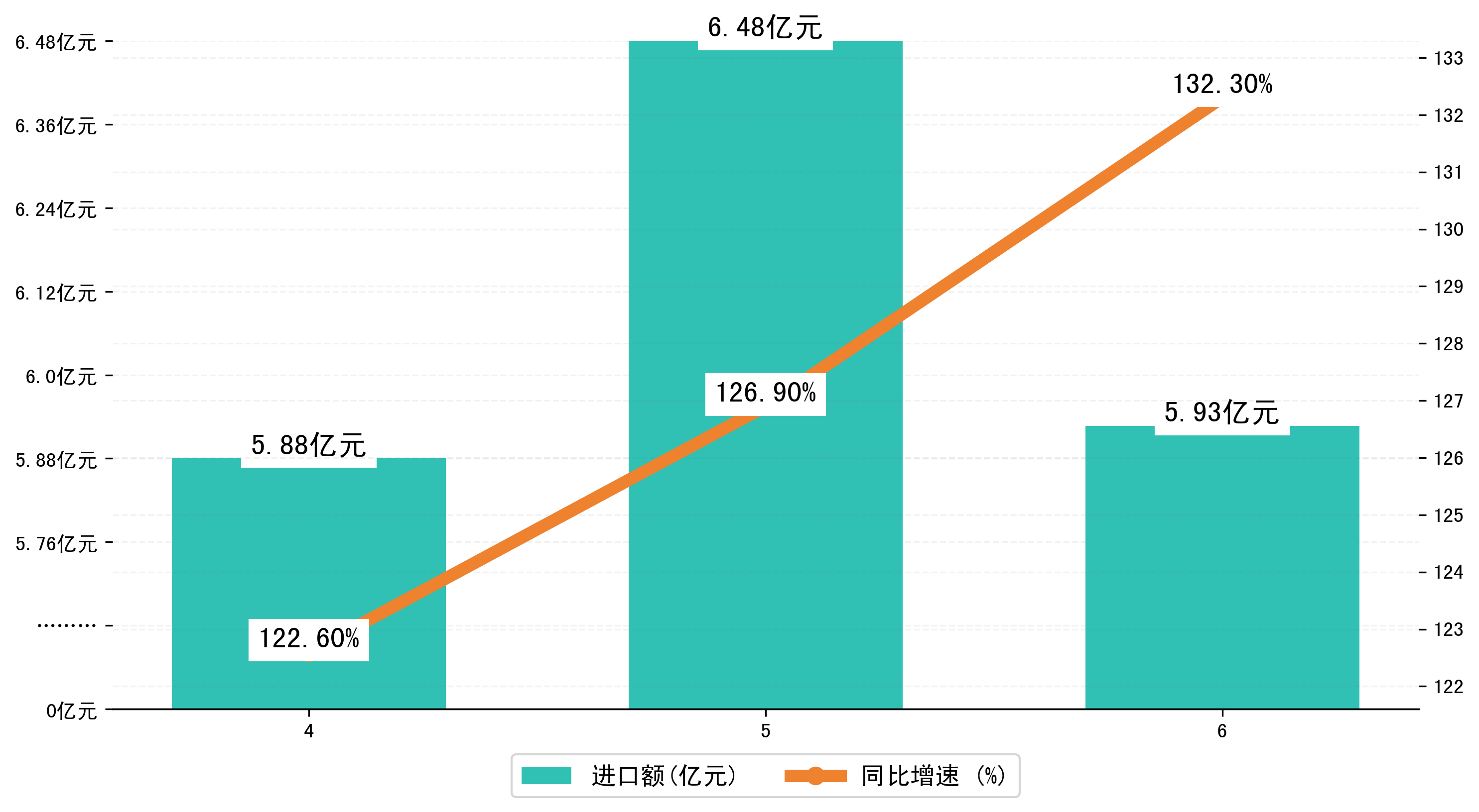 以美元计,2023年1-6月二连浩特市进口额为6,4989.299万美元,相比上年同期增加了3,4874.8267万美元,同比增加115.80%。