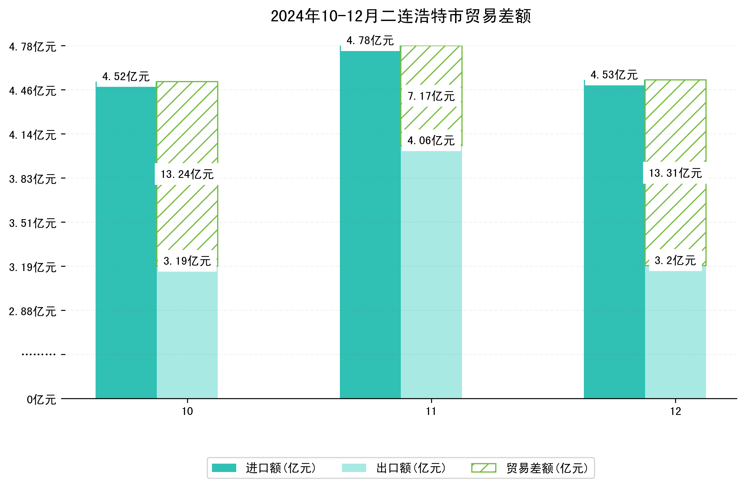 2024年12月二连浩特市进出口总额及进出口差额统计分析