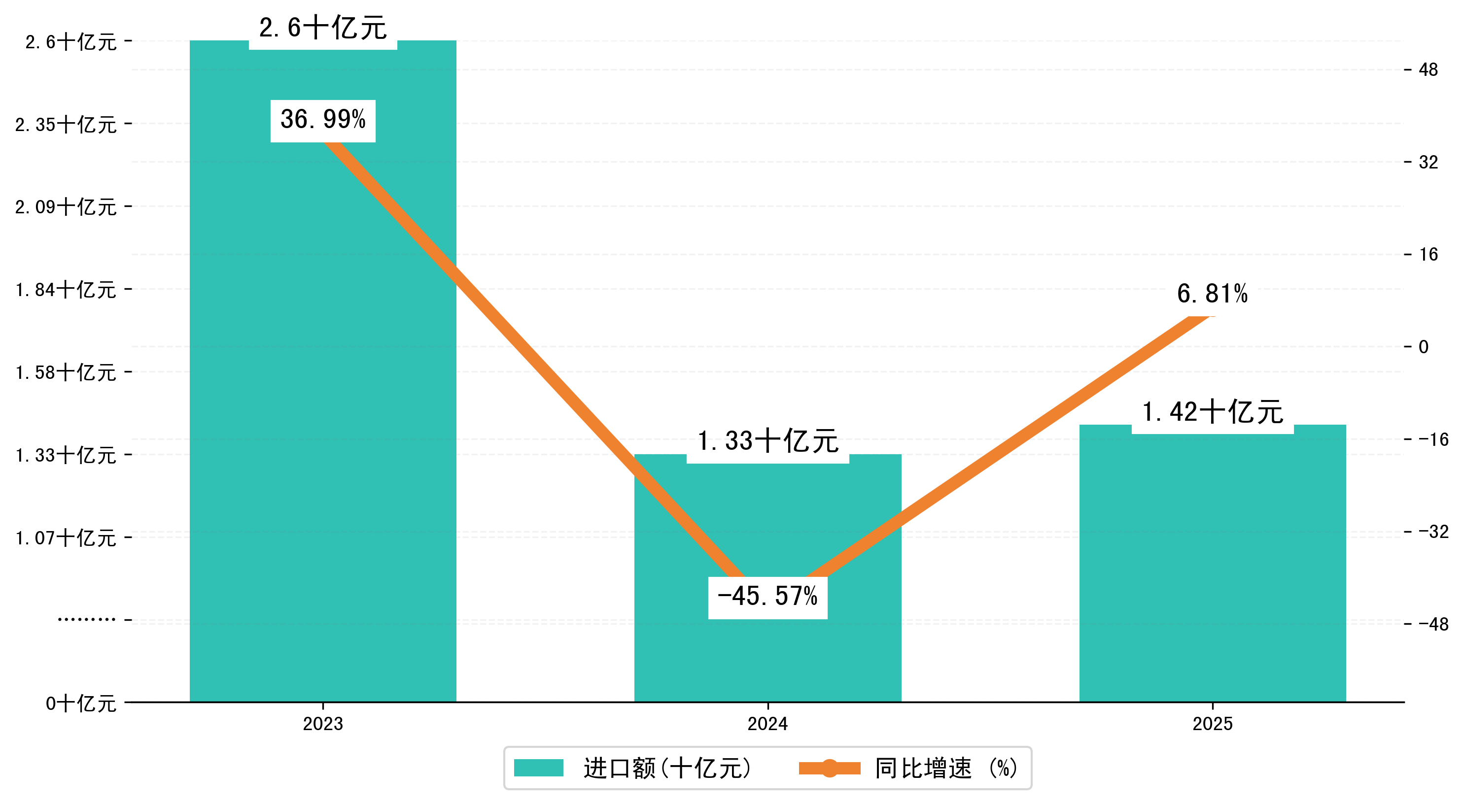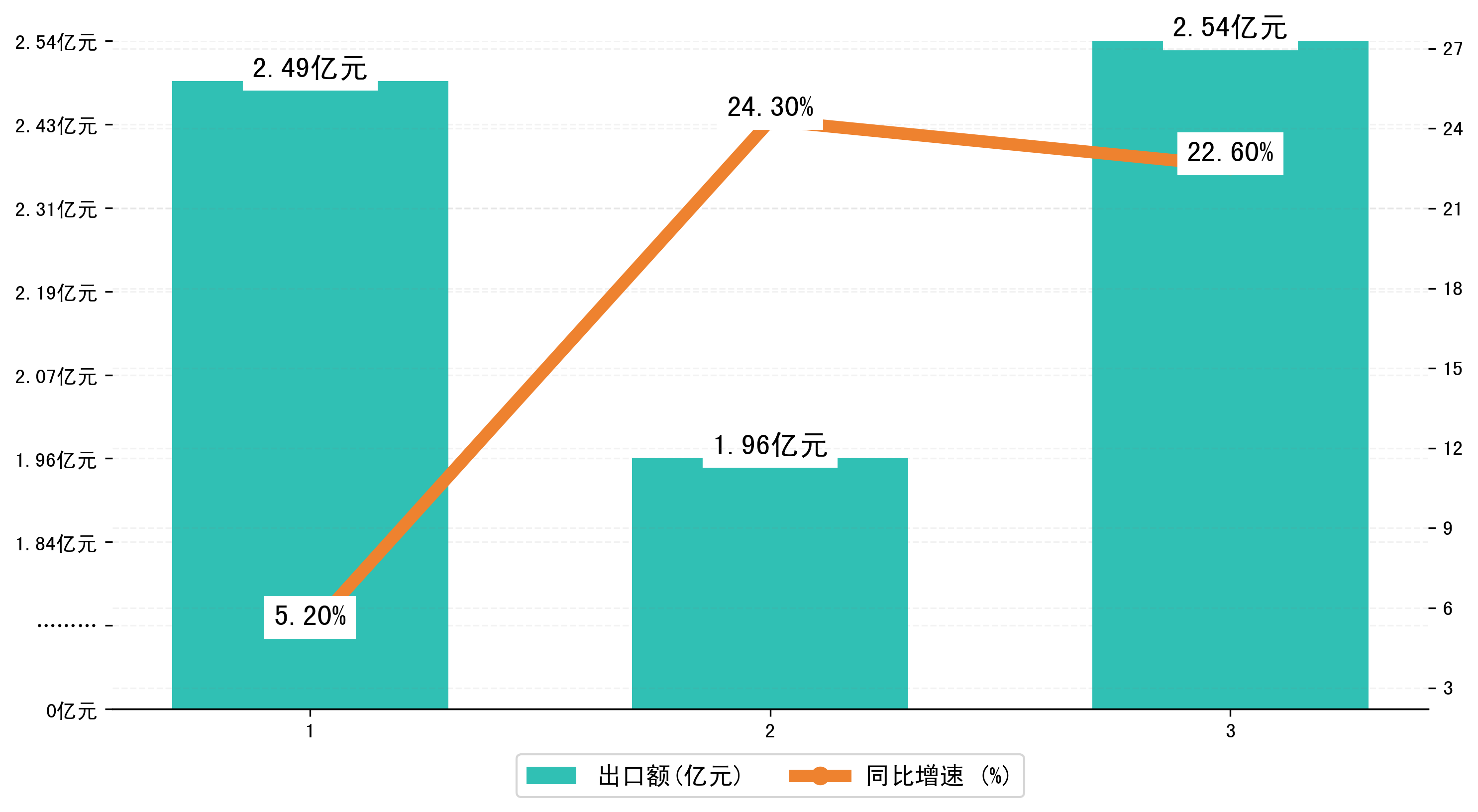以美元计,2025年1-3月二连浩特市进出口总额为2,9454.8181万美元,相比上年同期增加了2780.3659万美元,同比增加10.30%。