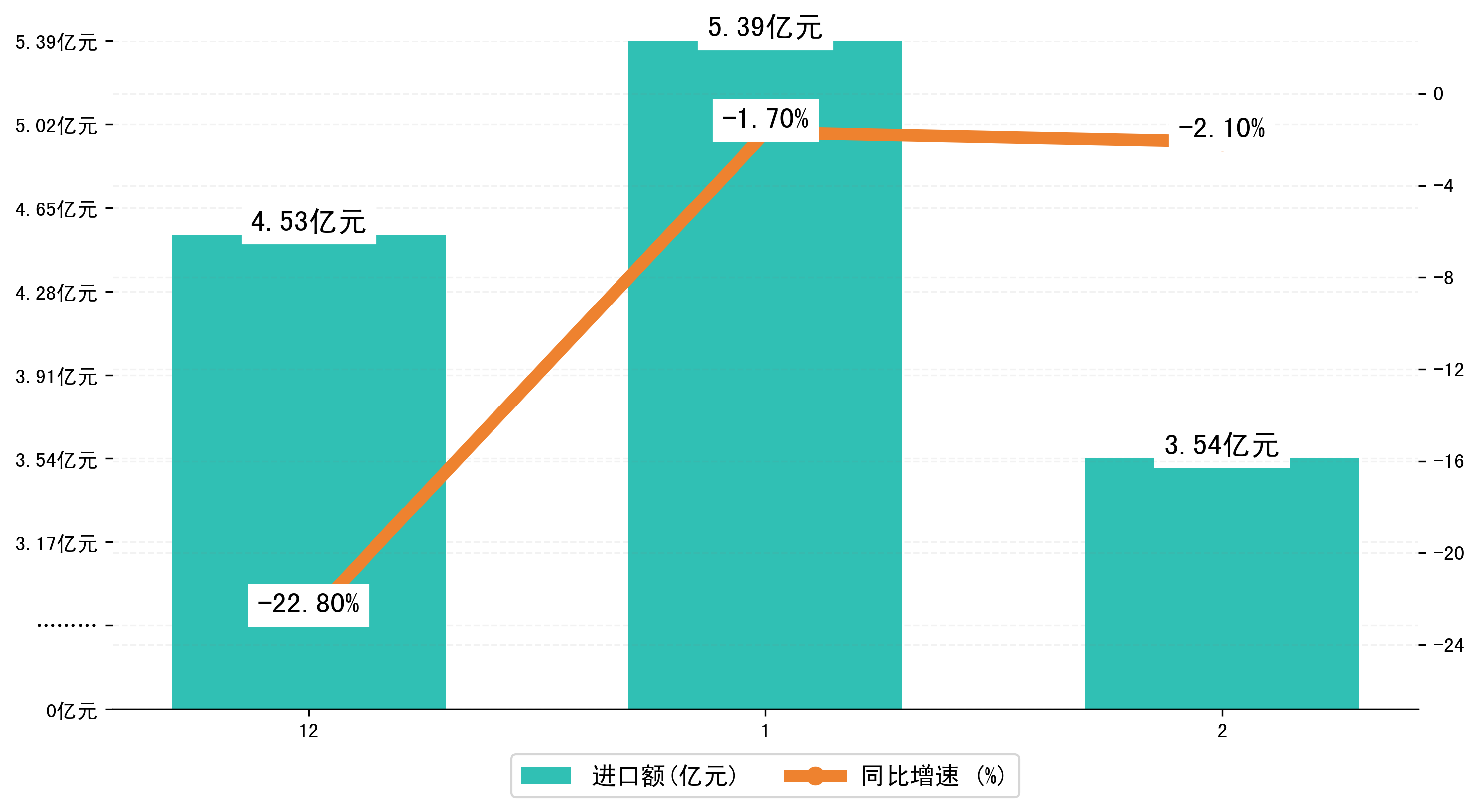 以人民币计,2025年1-2月二连浩特市进口额为8,9310.5482万元,相比上年同期减少了1702.0358万元,同比减少了-2.10%。