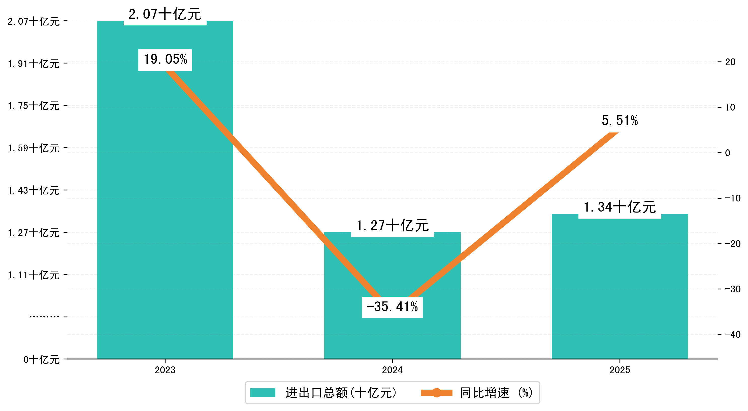 以美元计,2025年1-2月二连浩特市进出口总额为1,8623.8121万美元,相比上年同期增加了760.7975万美元,同比增加4.10%。