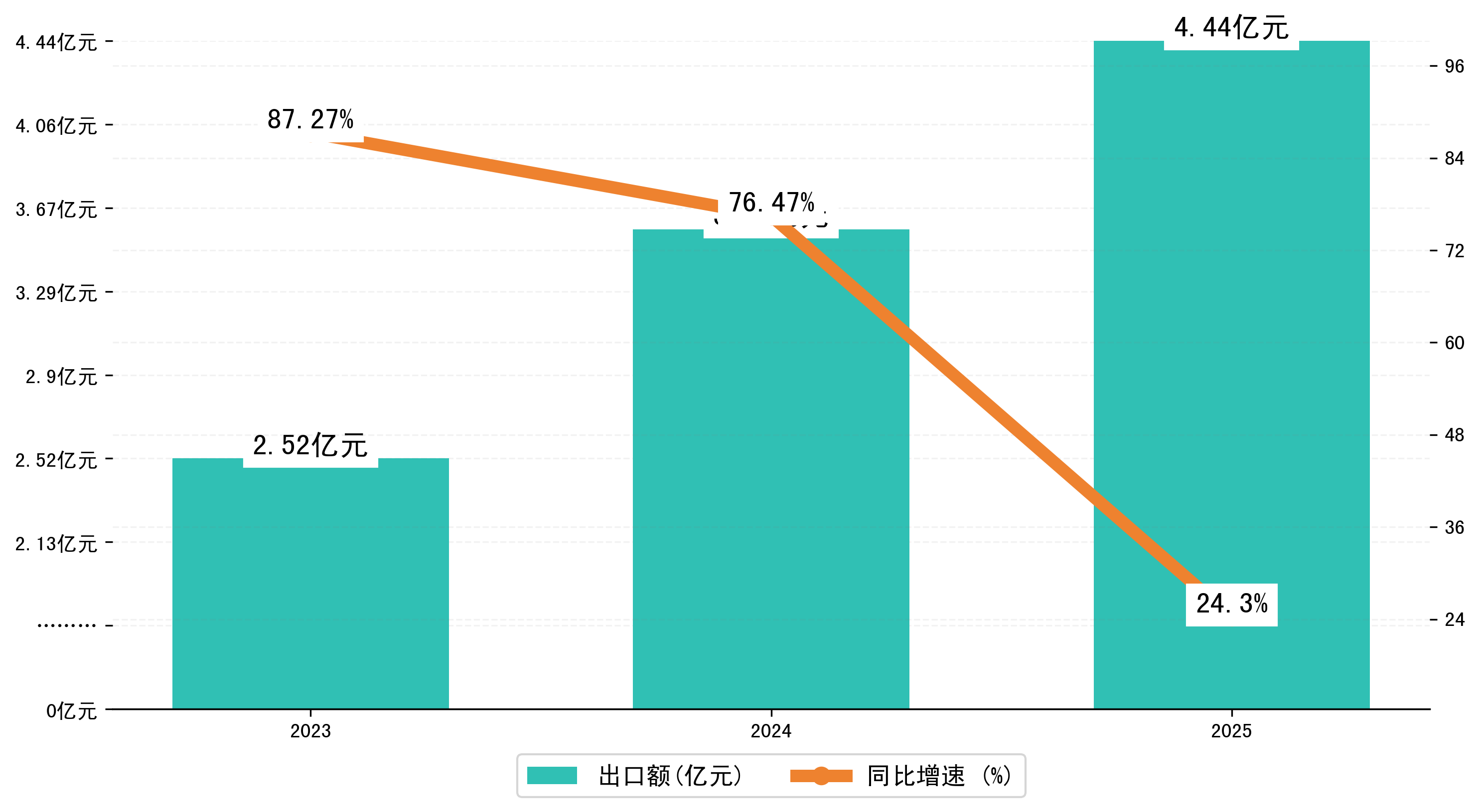 以美元计,2025年1-2月二连浩特市出口额为6186.2153万美元,相比上年同期增加了1146.7563万美元,同比增加22.70%。
