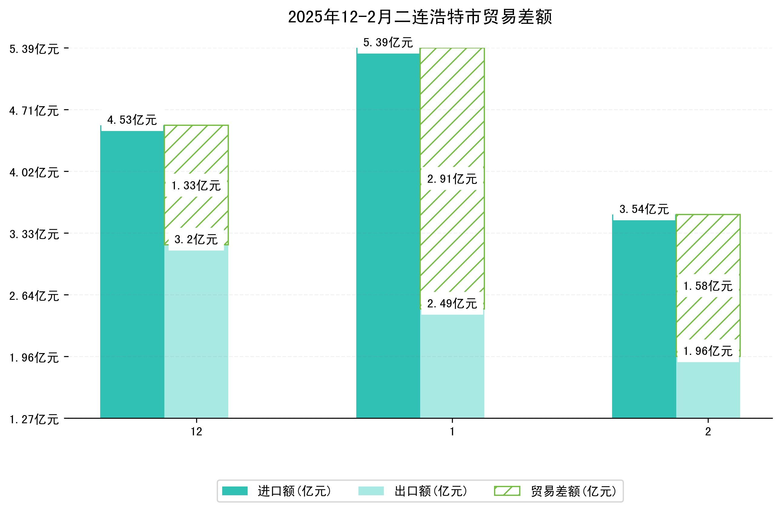 2025年2月二连浩特市进出口总额及进出口差额统计分析
