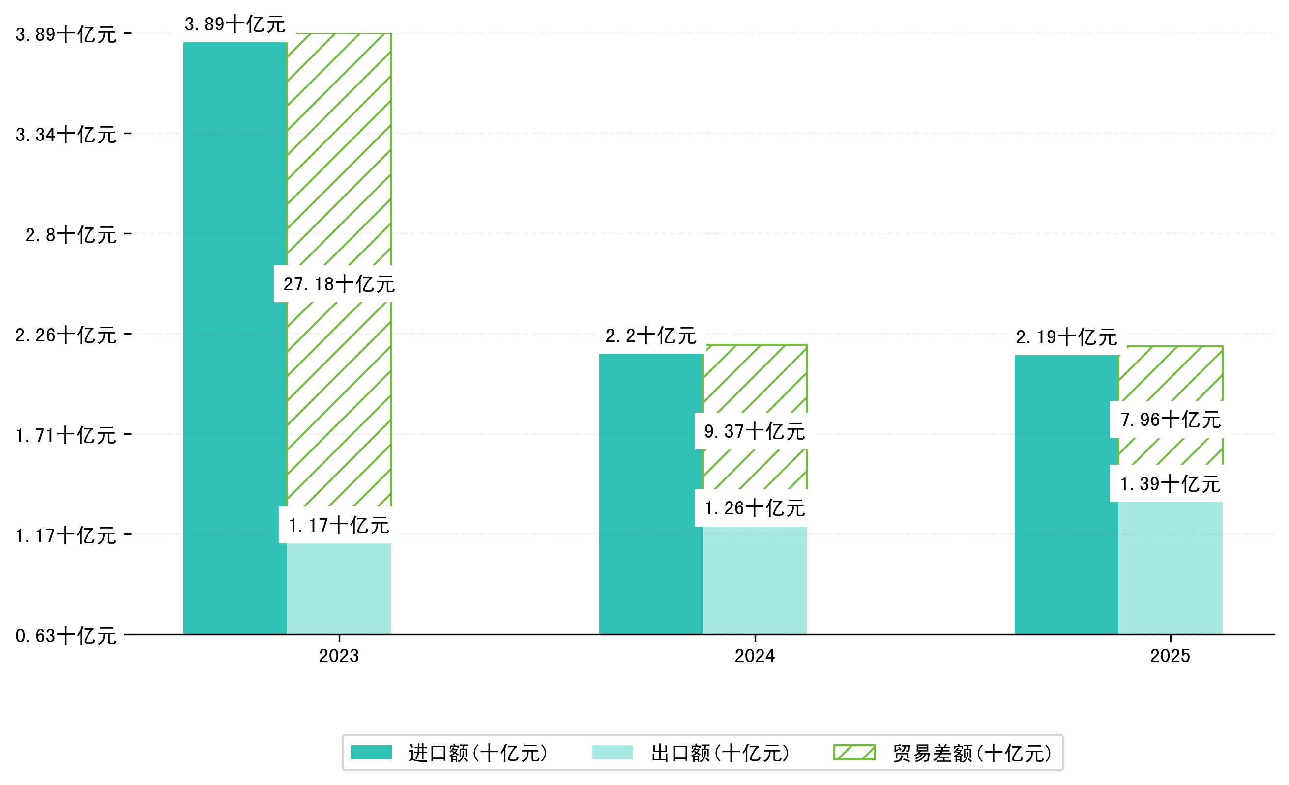 以人民币计,2025年5月二连浩特市贸易差额为4900,1592万元(贸易逆差),相比上月减少了5327,6729万元,即734,8449万美元;相比上年同期增加了1305,7549万元,同比增加-21.04%。