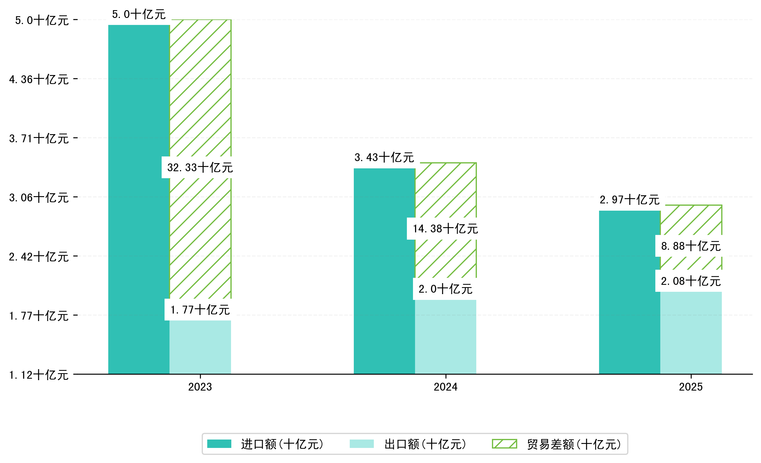 以人民币计,2025年1-7月二连浩特市贸易差额为8,8800,2545万元(贸易逆差),相比上年同期增加了5,5039,9630万元,同比增加-38.26%。